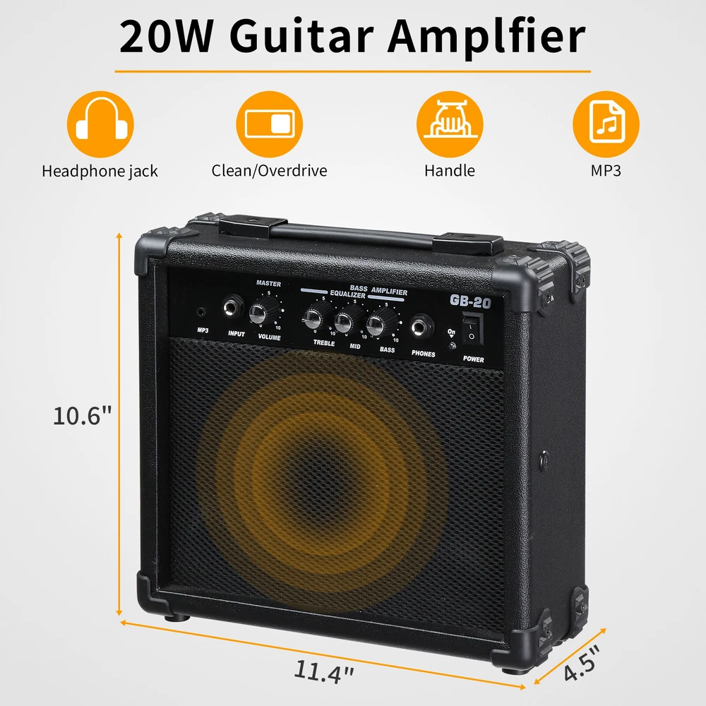 listing template VISIT OUR STORE SIGH UP FOR EMAIL Ktaxon 46-In Electric KP Bass Guitar Starter Kits for Student Ktaxon Full-Size KP 4 String Standard 46in Electric Bass Guitar with 20W AMP Kit for Beginner or music lover Sunset color Introductions: Looking for a high-performance bass guitar? Then take a closer look at our Ktaxon KP 46in Full-Size Electric Bass Guitar ! Featuring great sound and ease of playability, it is an ideal choice for beginners as well as bass musicians. Constructed with a wooden and synthetic body with a stunning finish, it delivers an outstanding look and sound. Comfortable neck and fingerboard are ideal for any style of playing. Adjustable bridge provides solid tone, sustain, and great intonation. High-tensile strength fretwire ensures durability and smooth playability. Bring it home right now! Features: Split Single-Coil Pickup; Single-Coil Pickup;2 x Volume;1 x Tone Standard 34in Scale Length The neck double adjustment: Two - way adjustable neck Audio interface: 1/4" Jack, suitable for general audio 20W electric guitar audio 1/4 inch headphone output jack, used for silent practice 1/8 inch auxiliary input jack, used for MP3 player Complimentary: guitar bag, guitar cable, shoulder strap, tremolo arm and pick Specifications: Style:Electric Bass Guitar with 20W AMP Kit Body Orientation: Right Handed Body: Basswood Color:Sunset color 3. Neck and Fingerboard Neck: Maple Fingerboard: Rosewood Strings: 4 Frets: 20 Nut width: 1.656 in. (42 mm) Scale Length: 34” 4. Pickups & Hardware Pickups: Split Single-Coil Pickup; Single-Coil Pickup Control: 2 Volume;1 Tone Hardware: Fixed(Chrome) 5. 20W Bass Amp Front Panel Controls: Volume, Treble, Mid, Bass, Phones Bass Guitar Input: (1/4" Jack) Headphone output: (1/4" Jack, Speaker defeating) Dimensions: 29*27*11.3cm Weight: 3.0 kg Speaker Size: 6.5 inch Impedance: 8Ω Auxiliary input jack(MP3): 1/8 inch 6. Dimensions Guitar: (46.6 x 12.6 x 1.65)" / (116 x 32 x 4.2)cm(L x W x H) Gutiar Weight:7.60lb / 3.45kg Package Includes: 1 x Bass 1 x Bass AMP 1 x Bass Bag 1 x Guitar Strap 1 x cable 1 x Wrench Tool 1 x Plectrum Warm Note: WARNING USE OF SPEAKERS: TO REDUCE THE RISK OF FIRE OR ELECTRIC SHOCK DO NOT EXPOSE TO RAIN OR MOISTURE INDOOR USE ONLY, AND PLEASEl UNPLUG THE SOCKET IMMEDIATELY WHEN THE SPEAKER IS NOT IN USE. RISK OF ELECTRIC SHOCK DO NOT OPEN. Shipping Policy 1. Ship worldwide from New Jersey by reliable shipping companies -- USPS, UPS, FEDEX, DHL, etc., and only to VERIFIED PAYPAL ADDRESS. Transport Delivery ETA. Package handling only takes 1 business day at our warehouse, so please make sure entering correct payment and shipping information before checking out. Once your payment is completed, we are not going to accept any more changes to your order. 2. International Buyers – Please Note: a. Import duties, taxes and charges are not included in the item price or shipping charges. These charges are the buyer's responsibility. b. Please check with your country's customs office to determine what these additional costs will be prior to bidding/buying. 3. Please check your shipping address carefully before checkout, it can't be changed if order completed. 4. Orders placed on weekend will be shipped within 2 days.Notification of shipment with tracking number will be sent to buyers. 5. Standard shipping: 2-7 business days Expedited Shipping: 2-3 business days One-day Shipping: 1 business day International shipping: Varies 6.Ship within 1 business day once payment completed. Notification of shipment with tracking No. will be sent to buyer. 7.We offer discounts for combine shipping. Please contact us first if you need combine shipping, and an invoice with discount will be sent to you. 8.Please allow 5 business days for delivery to US destinations on any eBay orders and 14 business days for delivery to any International destinations. We highly recommend our buyer choose priority/expess mail for international delivery which is much more stable. Return Policies 1. Refunds given only if item DOA and cannot be replaced via PAYPAL . If so, Please contact us with 5 days since you receive the item and and return to us within 30 days from the delivery date for exchange or refund. 2. If you need return, please contact our customer service representative, let us know the detailed problem and send us some pictures for confirmation. Payment Payment should be sent within 8(EIGHT) days of auction closing. Feedback If you are dissatisfied for any reason, please do not be quick to leave negative/neutral feedback. We work hard to make sure EVERY CUSTOMER 100% SATISFIED and resolve any problem for you. Work Time Work Time: Monday to Saturday About Us | Newsletter| Feedback| Contact Us Copyright © 2022 LikeDeal. All rights reserved. 无标题文档 Ktaxon 46-In Electric KP Bass Guitar Starter Kits for Student Ktaxon Full-Size KP 4 String Standard 46in Electric Bass Guitar with 20W AMP Kit for Beginner or music lover Sunset color Introductions: Looking for a high-performance bass guitar? Then take a closer look at our Ktaxon KP 46in Full-Size Electric Bass Guitar ! Featuring great sound and ease of playability, it is an ideal choice for beginners as well as bass musicians. Constructed with a wooden and synthetic body with a stunning finish, it delivers an outstanding look and sound. Comfortable neck and fingerboard are ideal for any style of playing. Adjustable bridge provides solid tone, sustain, and great intonation. High-tensile strength fretwire ensures durability and smooth playability. Bring it home right now! Features: Split Single-Coil Pickup; Single-Coil Pickup;2 x Volume;1 x Tone Standard 34in Scale Length The neck double adjustment: Two - way adjustable neck Audio interface: 1/4" Jack, suitable for general audio 20W electric guitar audio 1/4 inch headphone output jack, used for silent practice 1/8 inch auxiliary input jack, used for MP3 player Complimentary: guitar bag, guitar cable, shoulder strap, tremolo arm and pick Specificat