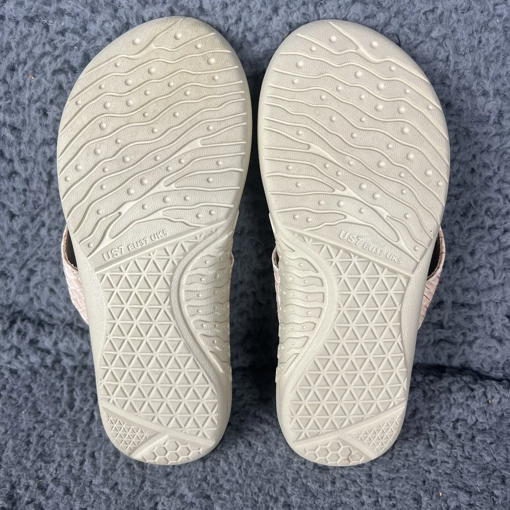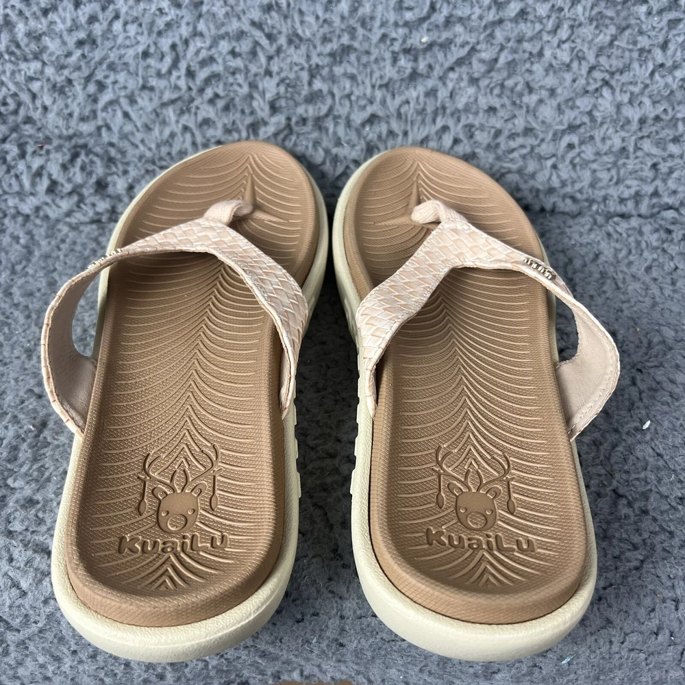 Elevate your casual style with these KuaiLu Women's Flip Flops. These sandals feature a slip-on closure, open toe, and thong strap type. The beige color and herringbone pattern type add a touch of sophistication to your outfit. These flip flops are perfect for all occasions, whether it's a day out with friends or a casual yoga session. The metal embellishment feature and rubber upper material make these sandals durable and comfortable to wear. The outsole and sole material are also made of rubber, providing extra cushioning. These flip flops are available in US size 7, UK size 5, and EU size 37. Buy now and experience the comfort and style of these KuaiLu Women's Flip Flops.