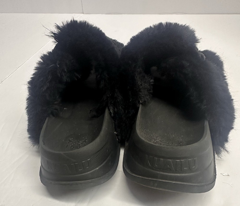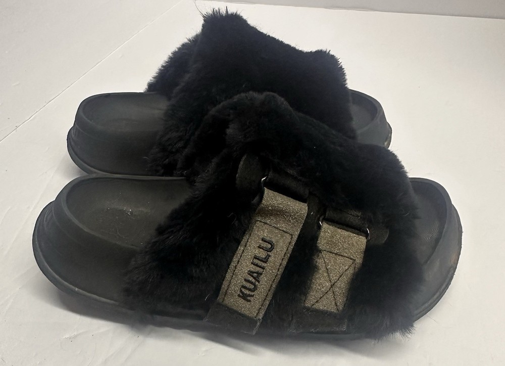 Season: Fall, Spring, Summer, Winter Accents: Adjustable Straps Upper Material: Faux Fur Color: Black US Shoe Size: 8 Model: Kuala Type: Slipper Insole Material: Rubber Closure: Slip On Features: Arch Support Brand: KUAILU Style: Slip-On Department: Women