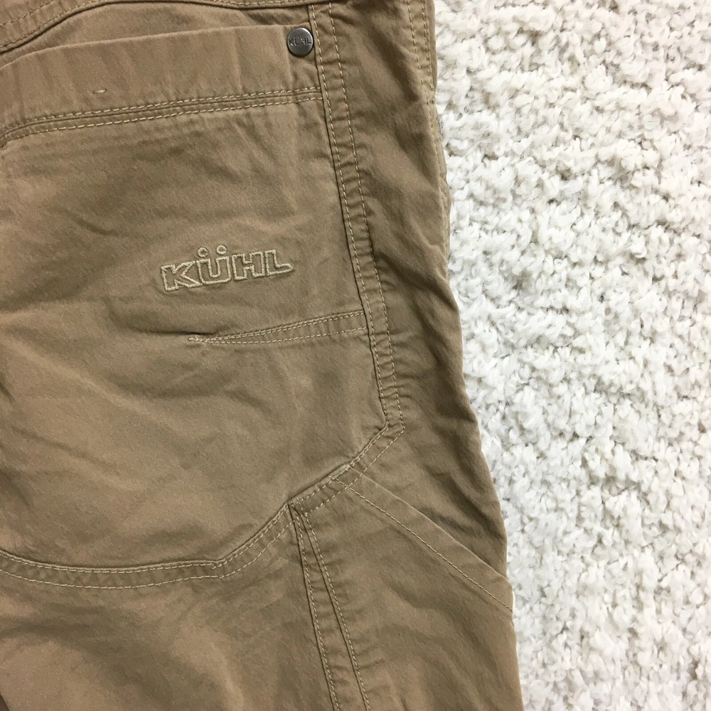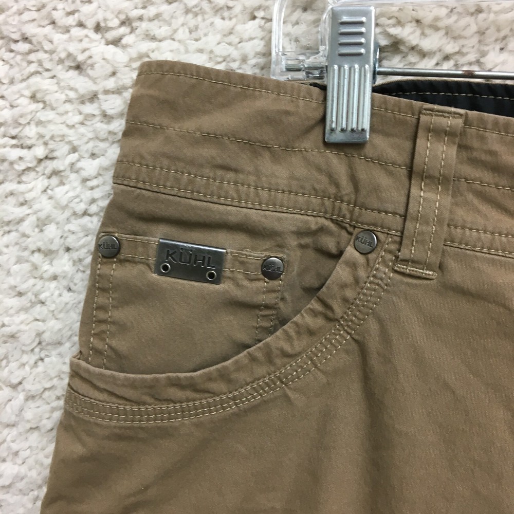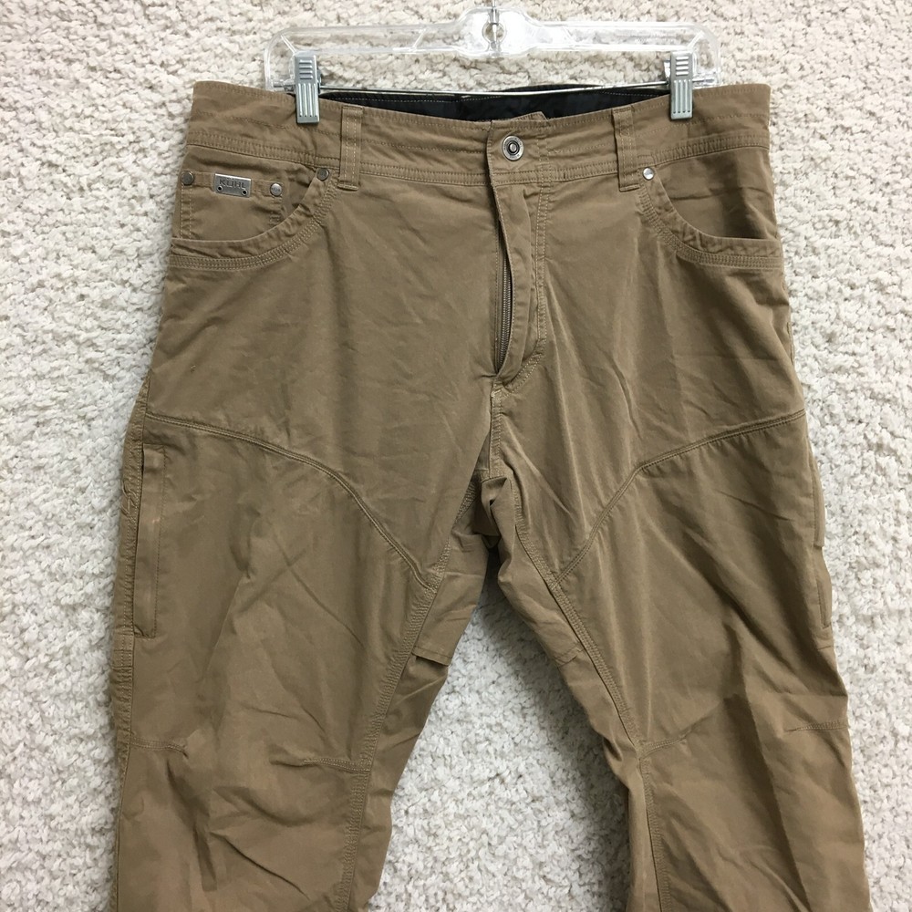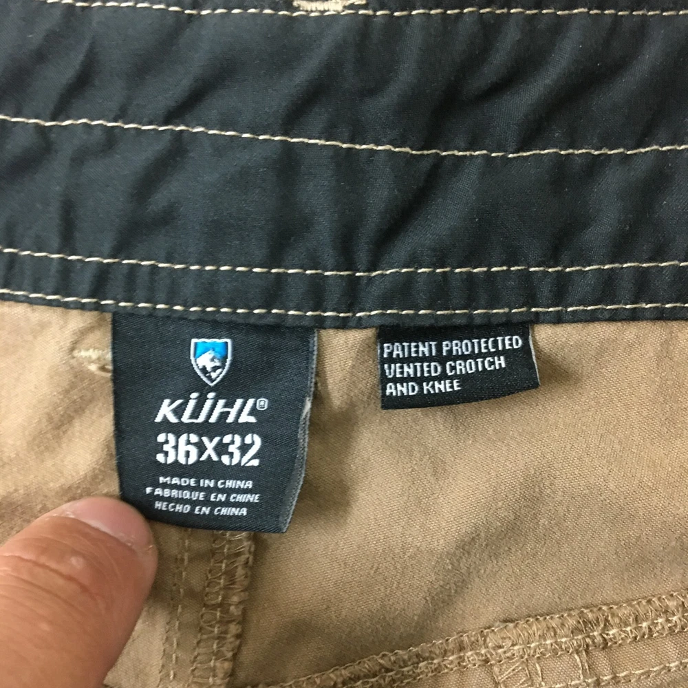 Accents: Button, Zipper Color: Beige Rise: Mid (10-12 in) Department: Men gtin13: Does Not Apply Features: Breathable, Comfort, Pockets, Stretch Waist Size: 36 Brand: Kuhl Closure: Button, Zip Size Type: Regular Inseam: 32 in Type: Pants Front Type: Flat Front Pocket Type: Cargo Pocket Theme: American, Classic, Logo, Modern, Outdoor Material: Cotton, Cotton Blend, Nylon, Spandex UPC: Does Not Apply Country/Region of Manufacture: China Pattern: Solid Leg Style: Straight Season: Fall, Spring, Summer, Winter Fit: Regular Occasion: Casual, Travel, Workwear Style: Cargo Size: 36 Garment Care: Machine Washable