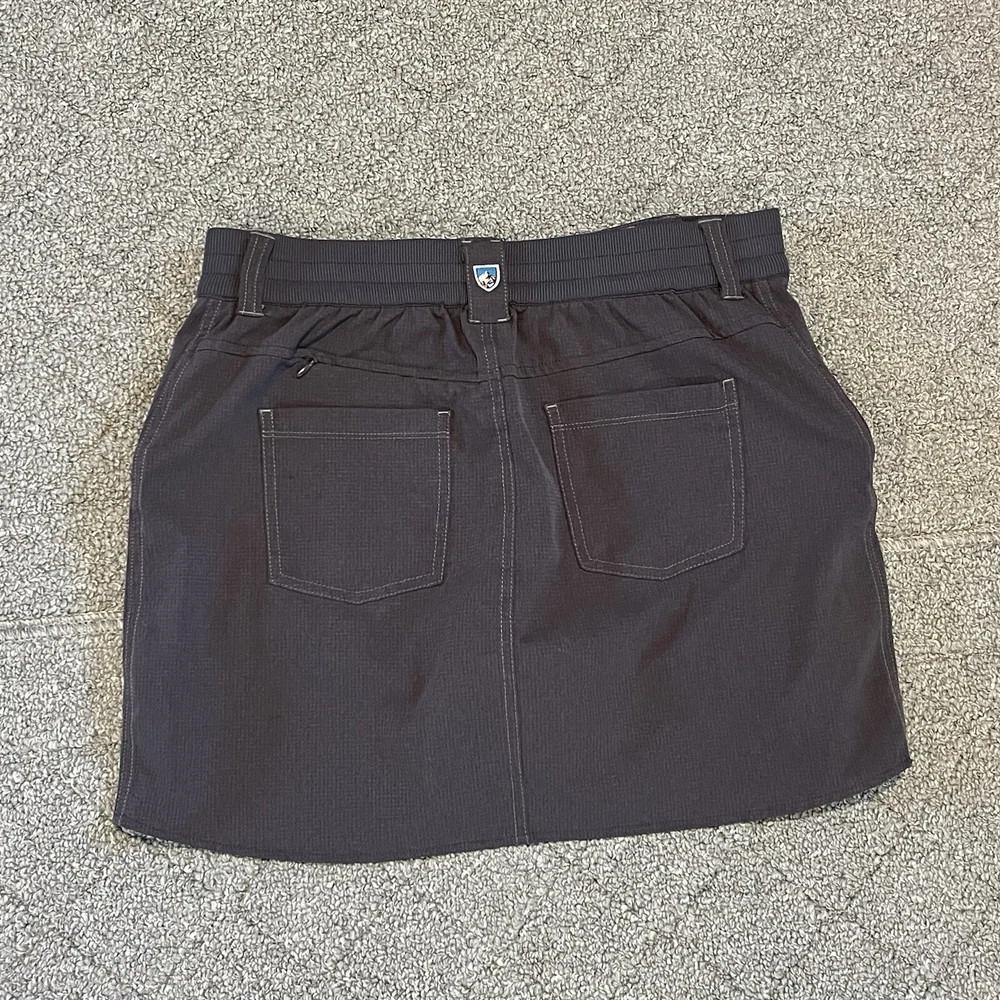 Features: Lined, Pockets, Stretch Brand: Kuhl Size: 6 Garment Care: Machine Washable Accents: Button, Logo, Zipper Size Type: Regular Vintage: No Fabric Type: Canvas Style: Skort Skirt Length: Short UPC: Does not apply gtin13: Does not apply Pattern: Solid Theme: Nature, Sports, Outdoor Season: Fall, Spring, Summer, Winter Department: Women Type: Skirt Rise: Mid Country/Region of Manufacture: China Closure: Zip Color: Gray Occasion: Casual, Travel, Workwear Material: Polyester, Spandex