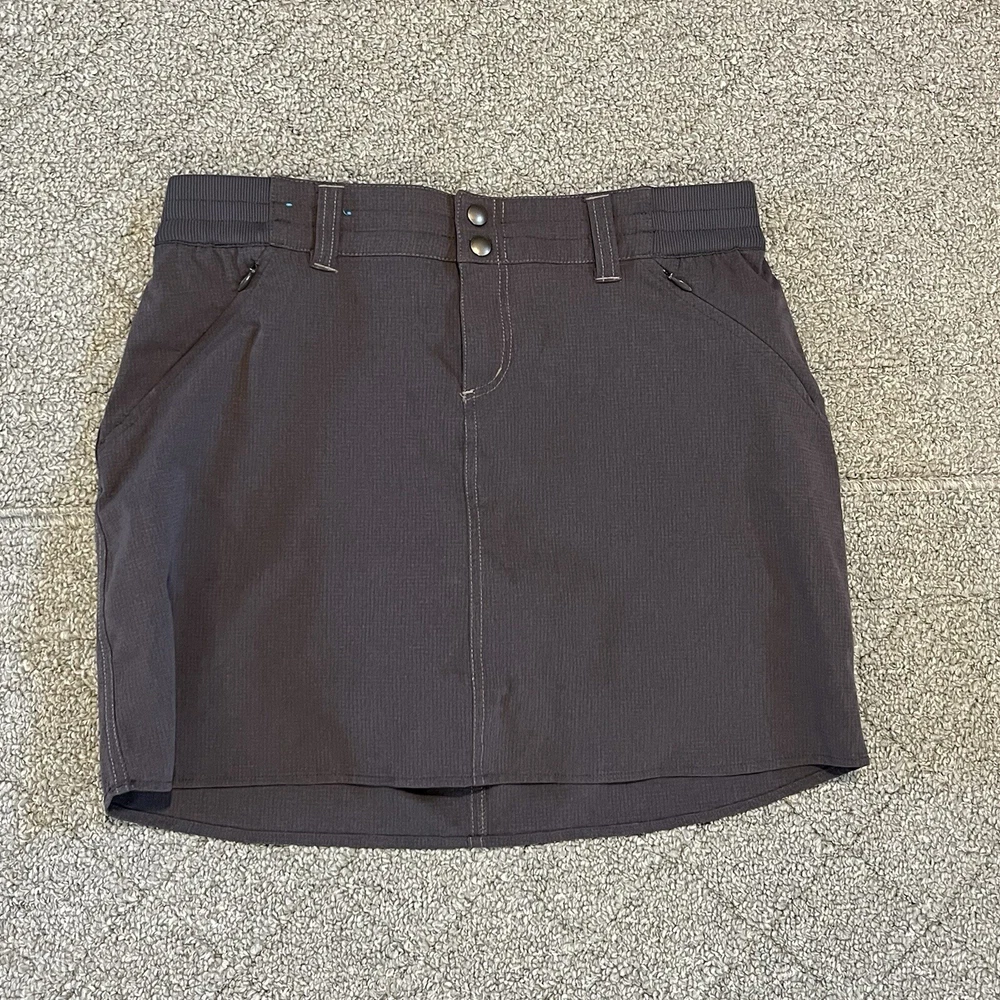 KUHL Skort Womens Size 6 Gray Stretch Outdoor Hiking Lined Active Ripstop See measurements for accurate fit Waist 15 inches across Total length 15 inches All measurements are done flat lay