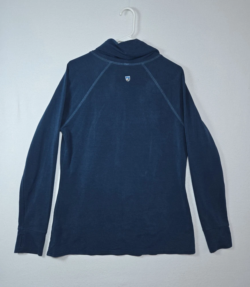 Kuhl Womens Funnel Neck Outdoor Pullover Hiking Thumbhole Sweatshirt Blue Sz L Please feel free to ask any questions you may have. Thank you for looking.
