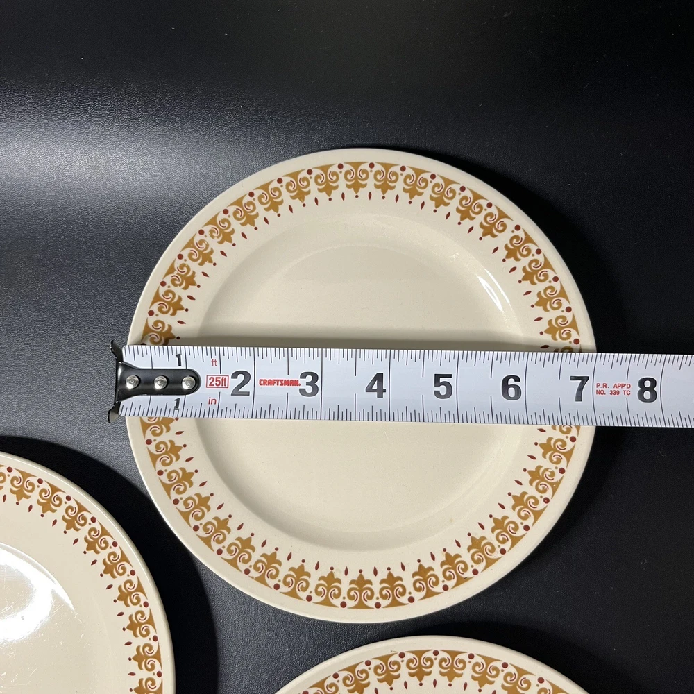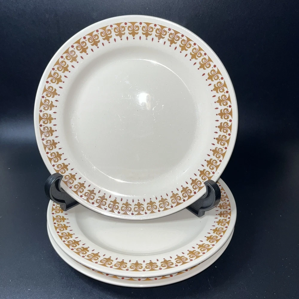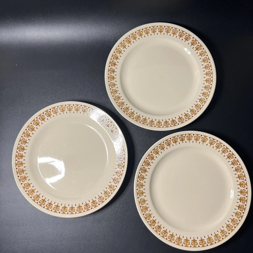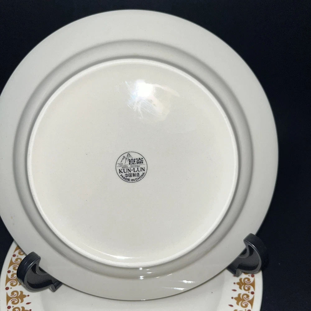 Kun Lun Stoneware Maroon and Brown Print 7" Dessert or Salad Plates Lot of 3 Deep red/maroon and tan/brown design on cream color ceramic plate. No chips or cracks.