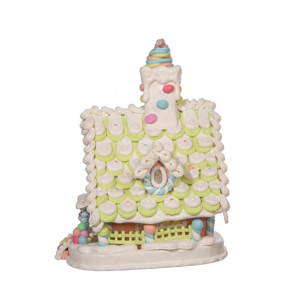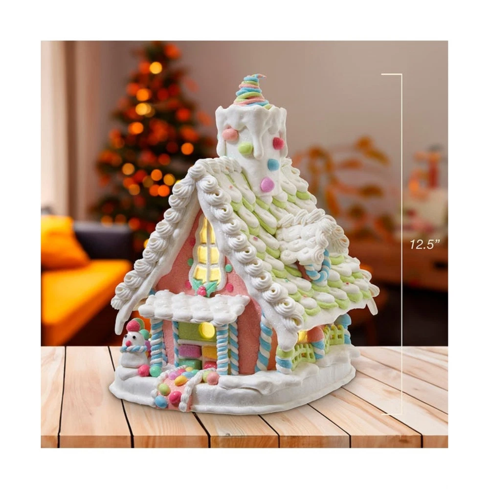 Kurt Adler Battery-Operated LED Light Up Pastel Gingerbread House, 12.5" PRODUCT DESCRIPTION This fun and whimsical table decoration from Kurt Adler is sure to add some life and color to your beautiful holiday display! Key Product Features LED Lit: Illuminated from within by a steady-on LED light Battery-operated: Uses 3 "AA" batteries (not included) Quality Craftsmanship: Made from colorful and shatterproof claydough Intricate Festive Display: Features a gingerbread house with all the candy ornaments and trimmings you find around the holidays. A Thoughtful Gift or Festive Accent: Ideal for collectors, fans, or anyone looking to elevate their seasonal décor Add a touch of sweetness and warmth to your holiday decor with Kurt Adler's Battery-Operated LED Light Up Pastel Gingerbread House. This charming little house features soft pastel colors, intricate details, and a glowing LED light that brings it to life with a cozy, festive glow. Perfect for displaying on mantels, tables, or windowsills, this gingerbread house creates a magical atmosphere that captures the spirit of the season. Its battery-operated design makes it easy to place anywhere without the need for outlets, allowing for flexible placement throughout your home.