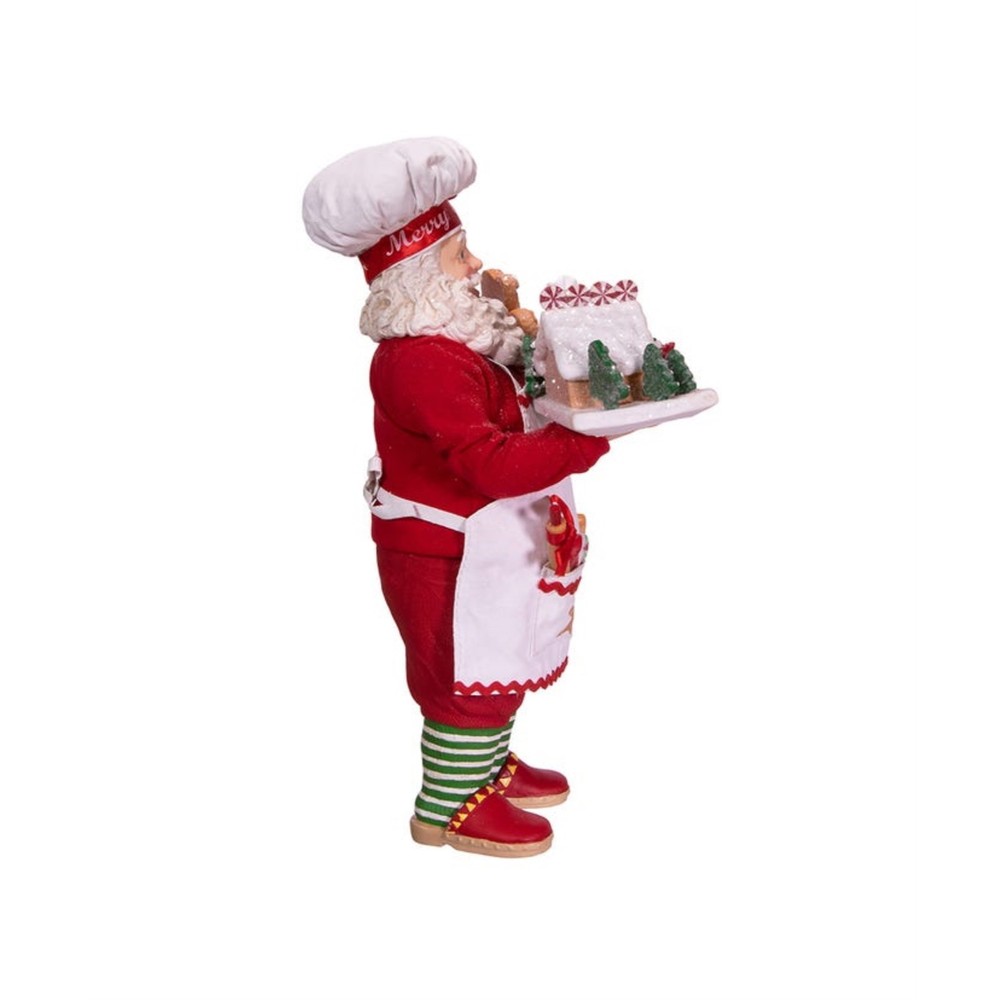 Kurt Adler Fabriché™ Gingerbread Santa Standing Christmas Figurine, 10.5" PRODUCT DESCRIPTION Add some festively sweet Christmas vibes to your holiday decor with this Chef Santa from Kurt Adler! Key Product Features Great for Collectors: Part of the Kurt Adler Fabriché™ collection Festive Baking Theme: Features Santa dressed as a holiday baker holding a gingerbread house and piping bag High-Quality Craftsmanship: Made from fabric mache, PVC, and polyester for durability and fine detail Display-Ready Size: Stands 10.5 inches tall, great as a seasonal centerpiece or collectible figurine Holiday Décor Favorite: Perfect for kitchen counters, mantels, dessert tables, or festive gifting Celebrate the baker in your life with this Kurt Adler Fabriché™ Gingerbread Chef Santa! This 10.5" Santa features Santa wearing an apron decorated with gingerbread men and a chef's hat with a "Merry Christmas" ribbon border. Santa is carrying a decorated gingerbread house and candy canes.