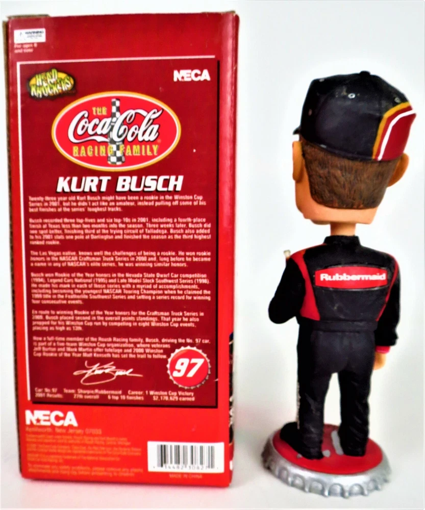 Kurt Busch "Coca Cola Racing Bobblehead", 2003 Head Knocker - NEW In Box Product Details: NEW In Original Box Kurt Busch Coca Cola Racing Bobblehead 2003 Head Knocker The bobblehead is 4" Tall Picture shows one out of box so you can see the product (It is not included) The one for sale is the one that is IN the box Sign in picture #2 not included! Pictures are of the actual item you will receive. Check out our other Coca-Cola Memorabilia! Thank you for shopping with us!