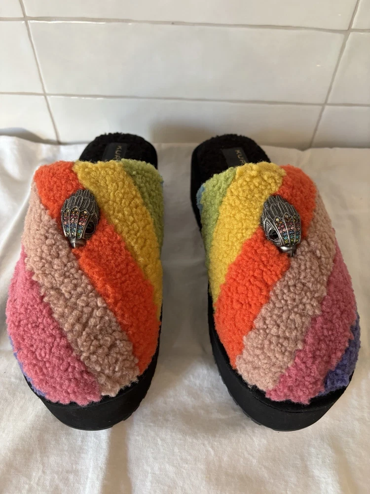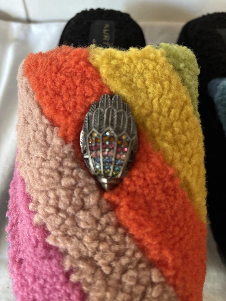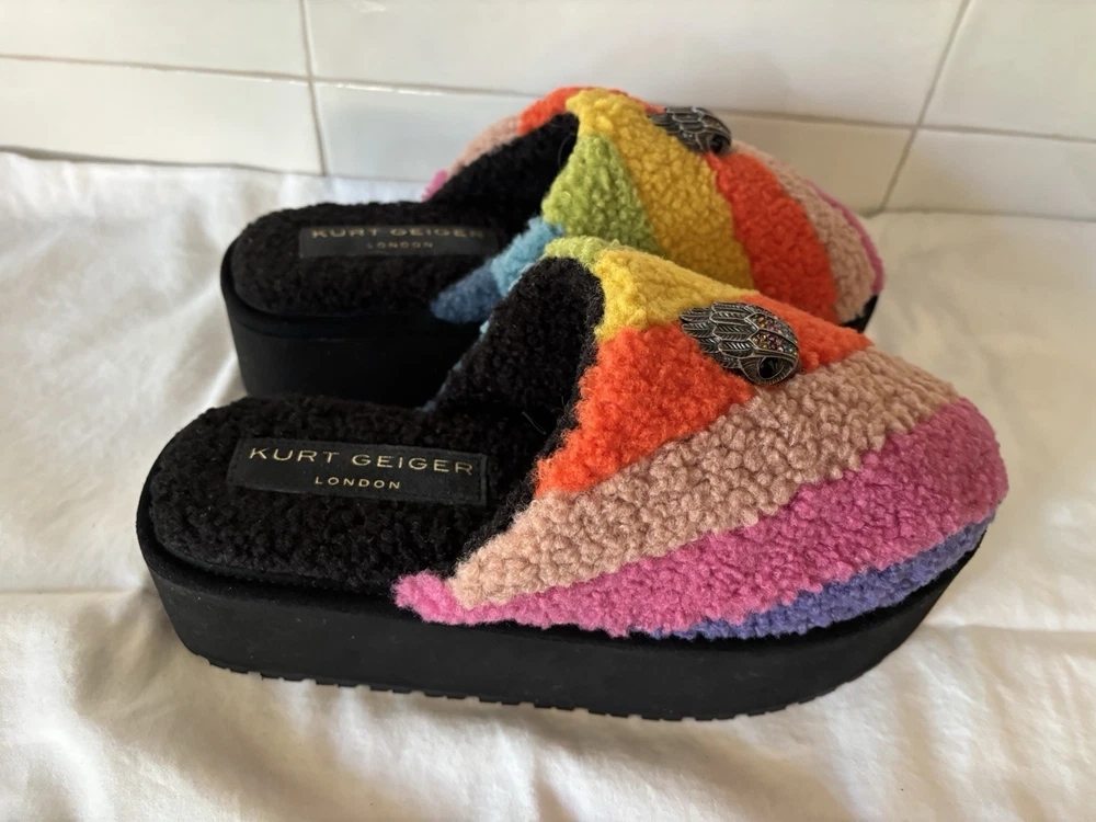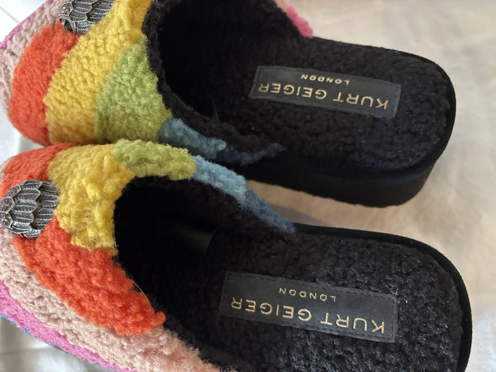 $ 15.84UGG ABELA SLATE FLUFFY SHEEPSKIN SLIPPERS OPEN TOE SLIDES WOMEN US 7 38 Fur Grey