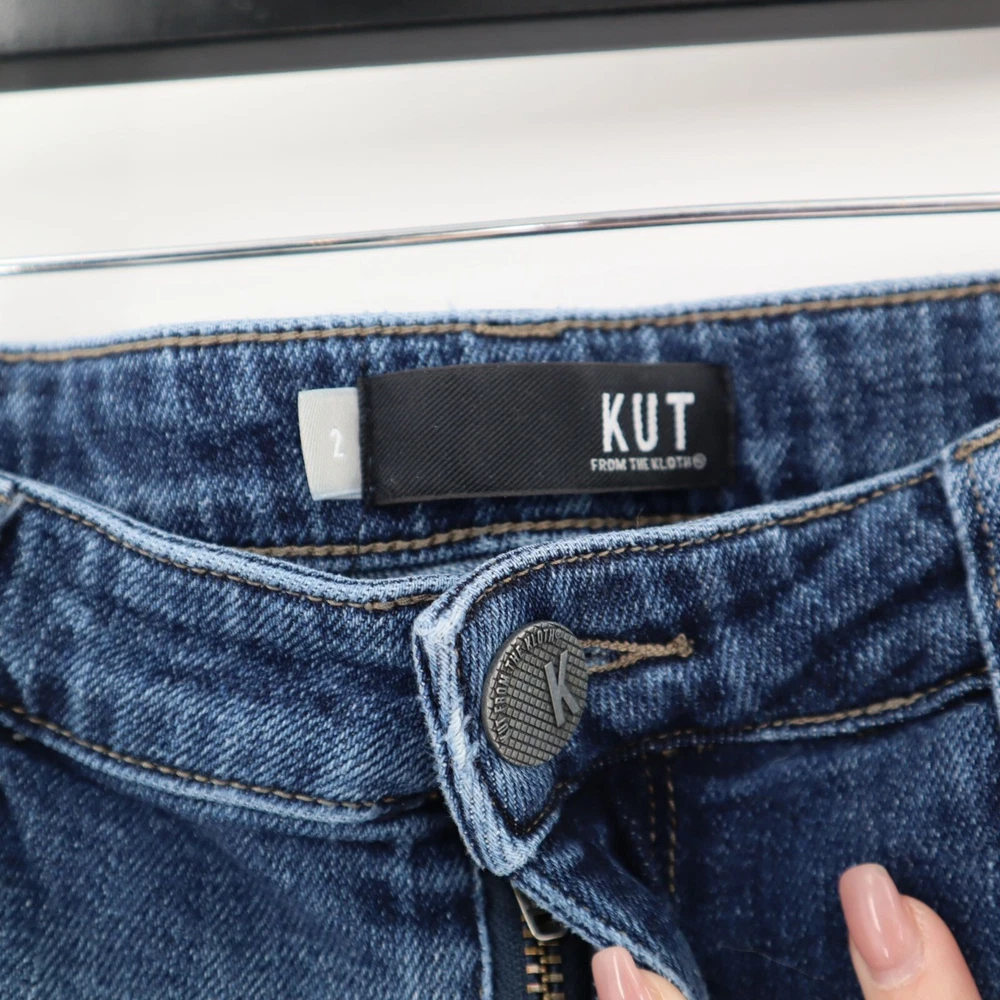 Kut From The Kloth Reese Ankle Straight Leg Jeans Womens Size 2 Denim Y2K Casual Why wear regular jeans when you can rock these bad boys? With a trendy raw hem and ankle length, they scream "I'm effortlessly cool" without you having to say a word. • Straight leg cut • Raw hem detailing • Ankle length • Button & zipper closure • Five-pocket design • Machine Washable • Made in China Materials : • 98% Cotton, 25 Spandex Size: Womens 2 Condition: Pre-Owned Good Gently worn condition with light fading. No major flaws.
