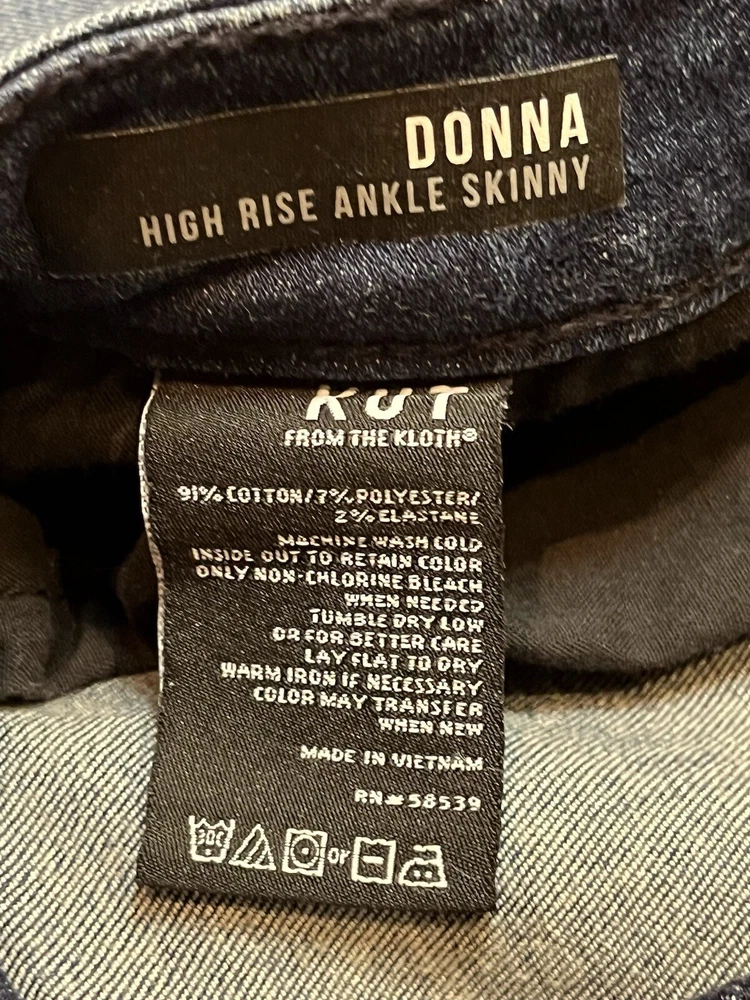 You are buying a pre-owned pair of Kut From The Kloth Size 4 Dark Wash Skinny Leg Jeans Donna High Rise Ankle. These jeans have light wear, no stains, holes or tears, working zippers and buttons, plenty of life left. Measurements: Size: Women's 4 Waist: 28” Full Length: 36” Inseam: 26” Rise: 10” Ships Free with USPS Ground Advantage. Free Returns. Will Ship Within 24 Hours of Payment.