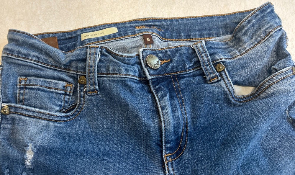Kut From The Kloth Women Jeans Size 6 Ankle Skinny Raw Hem Distressed Blue Denim