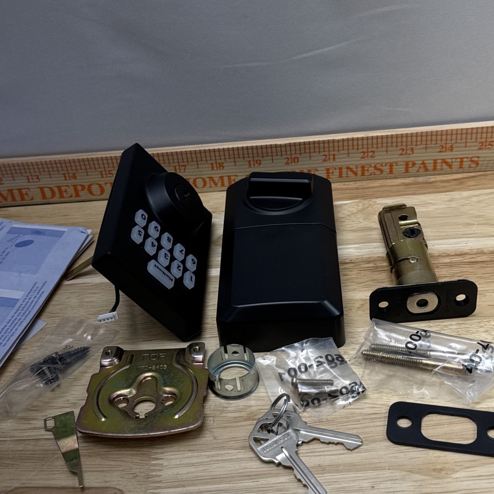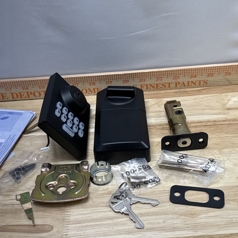 Strike Plate Height (in.): 2.25 in Security/ANSI Grade: ANSI Grade 3 (Good) Required Door Thickness (in.): 1-3/8 in to 1-3/4 in Type: Deadbolt Finish: Matte Black Number of Batteries Required: 4 Hardware Included: Deadbolt Interior/Exterior: Exterior Hardware Color Family: Black Finish Family: Matte Black Keyway: KW1 Material: Steel Faceplate Depth (in.): 0.96875 in Faceplate Height (in.): 4.406 in Connectivity: Not Connected Trim: Square Product Weight (lb.): 2 lb Model: 9250CNT514SMTRB Door Lock Style: Contemporary Electronic/Mechanical: Electronic Brand: Kwikset Power Source: Battery gtin13: 883351891486 Strike Plate Width (in.): 1 in Smart Technology: Keypad Included: Installation Instructions,Mounting Hardware Door Locks & Knobs Product Type: Deadbolts Total Number of Keys Included: 2 Door Handing: Universal Projection (in.): 0.96875 in UPC: 883351891486 Faceplate Width (in.): 2.8125 in Color: Black Lock Type: Deadbolt Backset Size (in.): Adjustable MPN: 9250CNT514SMTRB Battery Type: AA Battery Deadbolt Type: Single Cylinder Deadbolt Commercial/Residential: Residential Wired or Wireless: No electrical connectivity