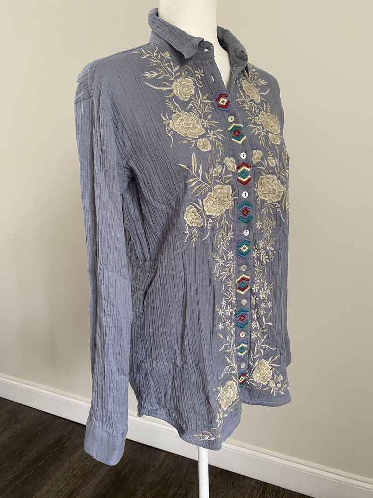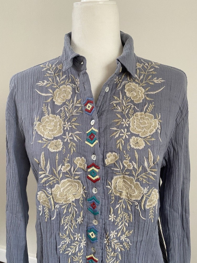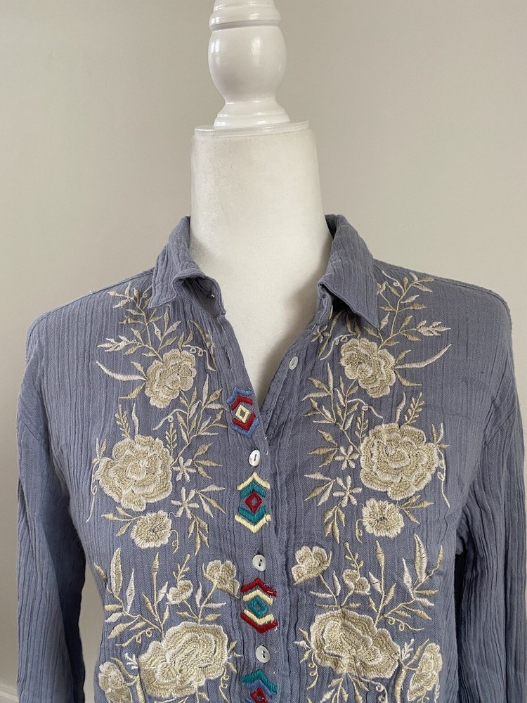 Kyla Seo Women’s Embroidered LS Anni Shirt Vintage Blue Cotton NWT Sz S. Pit to Pit: 21.5”; Length: 27”. Condition of the item is NWT. Shipped asap by USPS First Class Mail.