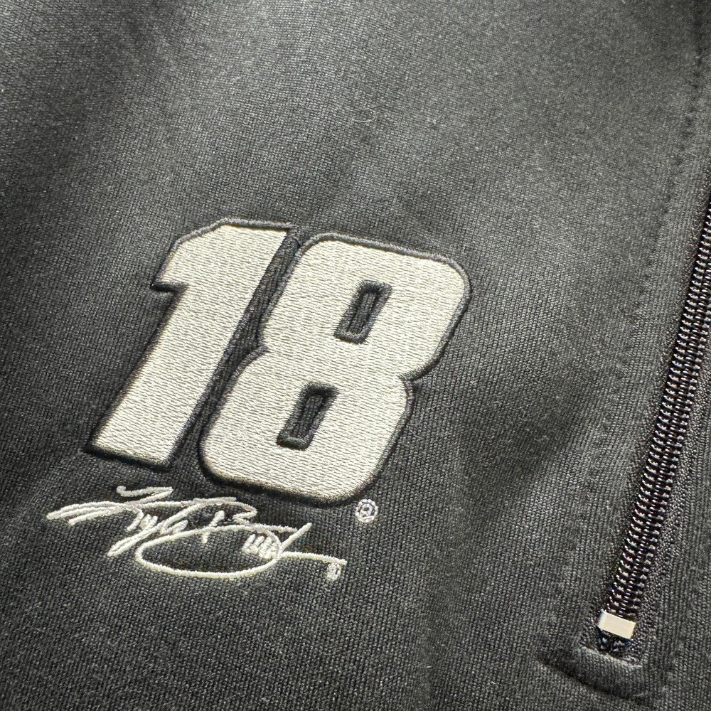Kyle Busch #18 M&M'S Official NASCAR Jacket Mens Large Black Chase Authentics Racing 1/4 Zip Pullover Embroidered Very good condition, see all pictures for views. •Pit to pit: 25" •Shoulder to hem: 29" Thank you for your purchase, we appreciate you!