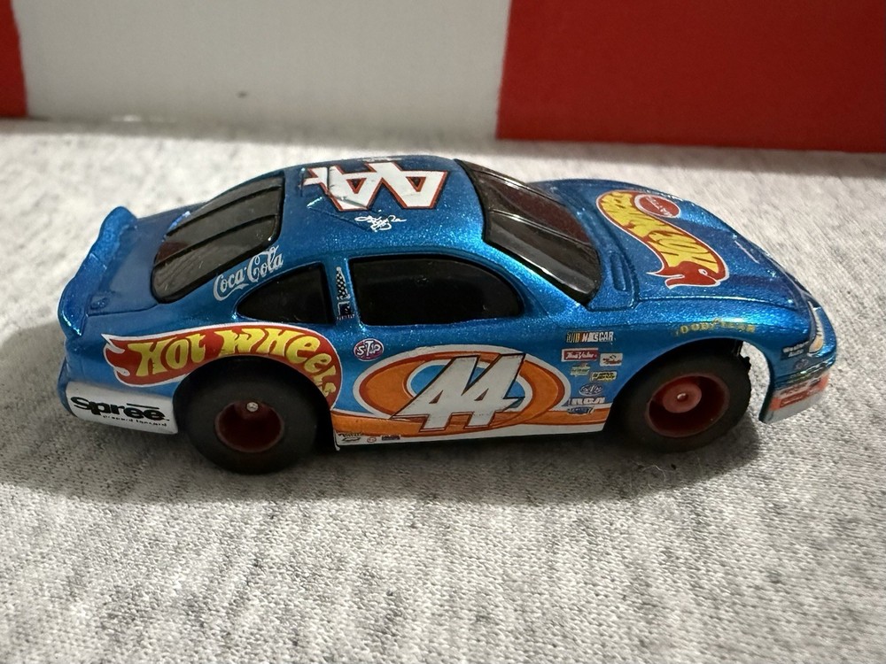 The Tyco Hot Wheels #44 Kyle Petty NASCAR Slot Car is a HO scale slot car replica of a NASCAR vehicle driven by Kyle Petty. Produced by TYCO, this toy car features the iconic #44 and is designed for slot car enthusiasts to race and play with. With its detailed design and high-quality construction, it is a must-have for collectors and fans of NASCAR and slot car racing. Slot car looks good and runs well… sold as is