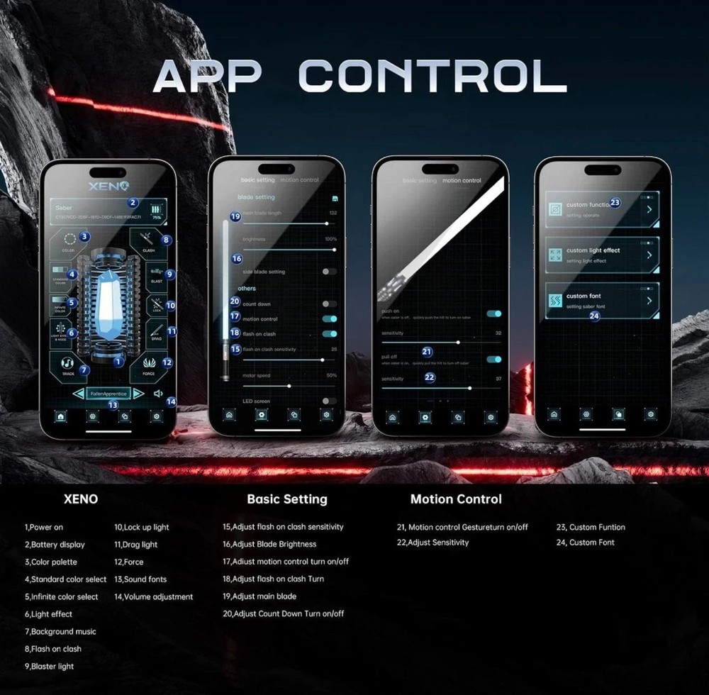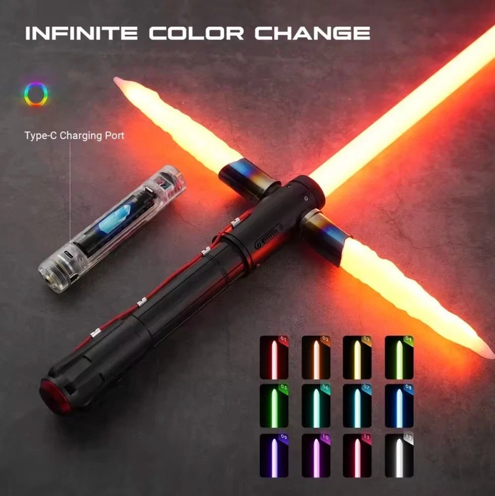THE DELIVERY FOR THIS ITEM IS ~1 WEEK. FULL TRACKING AVAILABLE. Oversized Parcel Tracked Delivery with Customs included in purchase price. Full customer service provided, any questions please don't hesitate to ask. Strong Polycarbonate Blade; Duel Ready! Brand Affiliated | Quality Assurance Variant XRGB 3.0 Xeno3.0Pixel Technology Type Single high‑power LED in the hilt Advanced pixel‑blade system with LED strip inside blade Brightness Bright but less intense than pixel blades Extremely bright, screen‑accurate glow Smooth Swing Good motion response but less dynamic Very fluid, premium motion response Effects Basic ignition and clash effects Blaster deflects, unstable blade, ignition styles Sound Quality Standard sound fonts, simpler profiles High‑fidelity sound fonts. Comes with USB to add more sound fonts Colour Options Full RGB but fewer advanced effects Full spectrum, highly customizable Material Type Aluminium, Cardboard, Foam, Plastic Included Components Blade, Hilt, Screws and Hexagonal Tool, USB-C Charging Cable, User Manual The Kylo Ren Lightsaber is a highly detailed collectable item inspired by the iconic weapon wielded by the character in the Star Wars franchise. This unique lightsaber features app control, allowing for smooth swing motion and a flash of light on clash. Made in China, this officially licensed replica is a must-have for any science fiction collector or Star Wars fan. Bring the power of the dark side into your own home with this impressive and authentic-looking lightsaber. Smooth Swing Technology – Advanced motion‑synchronized sound delivers seamless audio with every swing, spin, and clash, making duels feel cinematic. App‑Controlled Customization – Connect via Bluetooth to the companion app for full control of colours, sound fonts, and settings. Personalize your lightsaber experience with just a tap. Customizable Blade Colours – Choose from classic blue, green, fiery red, calming purple, and more. Includes infinite colour‑changing mode for endless personalization. Immersive Sound Effects – Upgraded sound module and motion sensor recreate the iconic hums, clashes, and battle sounds fans love — perfect for duelling or display. Rechargeable & Portable – Powered by a long‑lasting lithium‑ion battery, easily recharged via USB‑C (cable included). No need for disposable batteries. Flash on Clash Feature – Dynamic bursts of light at every strike emulate cinematic sparks, immersing you in the thrill of battle.