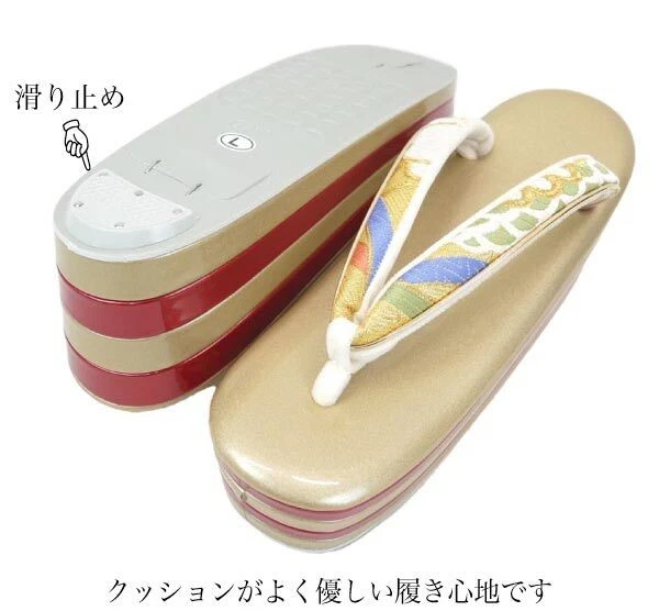 Free Size Thick Sole Zori Bag Set Nishijin Ori ZB-007 Made in Japan Gold Coming