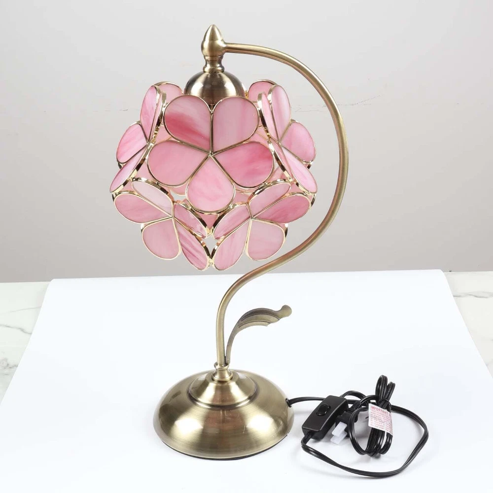 Cherry blossoms are a symbolic flower of the spring, a time of renewal, and the fleeting nature of life. Their life is very short. After their beauty peaks around two weeks, the blossoms start to fall. ... A cherry blossom makes people merry. This is a Tiffany-style stained glass petal lamp. Each lampshade has 11 flowers, each flower has 5 petals, each petal is made of pink stained glass that is wrapped by copper rims that add strength and durability to the lampshade. it looks stunning when you place it in your house. you definitely will receive many compliments. It's also a special gift for your lover, parents, children, clients, and colleagues; It perfectly fits for a bedside, living room, end table, working table, and dining room, etc If you use it at night, the petals will be projected onto the wall. the light and shadow on the wall will add a great ambiance to your house. it definitely an amazing nightstand lamp. is a worldwide well-known brand of Tiffany-style stained glass products, we specialize in designing and manufacturing Tiffany style lamp, window panel, and other stained glass artworks. Size: 8-inch wide lampshade, 17-inch high, Uses 1 x 40W (Max) E26 bulb (Not included), In-line switch; ELEGANT PETAL: This is a simple style petal lampshade that is made of pink stained glass; Simplicity is the key to aesthetic success in spaces inspired by this style HANDMADE: This lamp is handmade by skilled craftsmen; The lampshade is made of stained glass and it is prepared by using the copper foil method TIMELESS: The stained glass is timeless and never losing its luster; You will notice the difference in color between the light on and off IDEAL DECOR: You will see many shadows of the petal on you wall when you light it up at night. it's really an amazing home decor no matter where you place it.