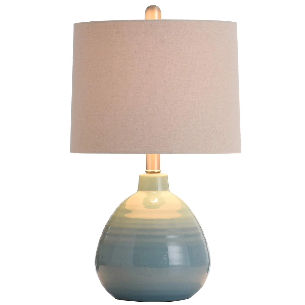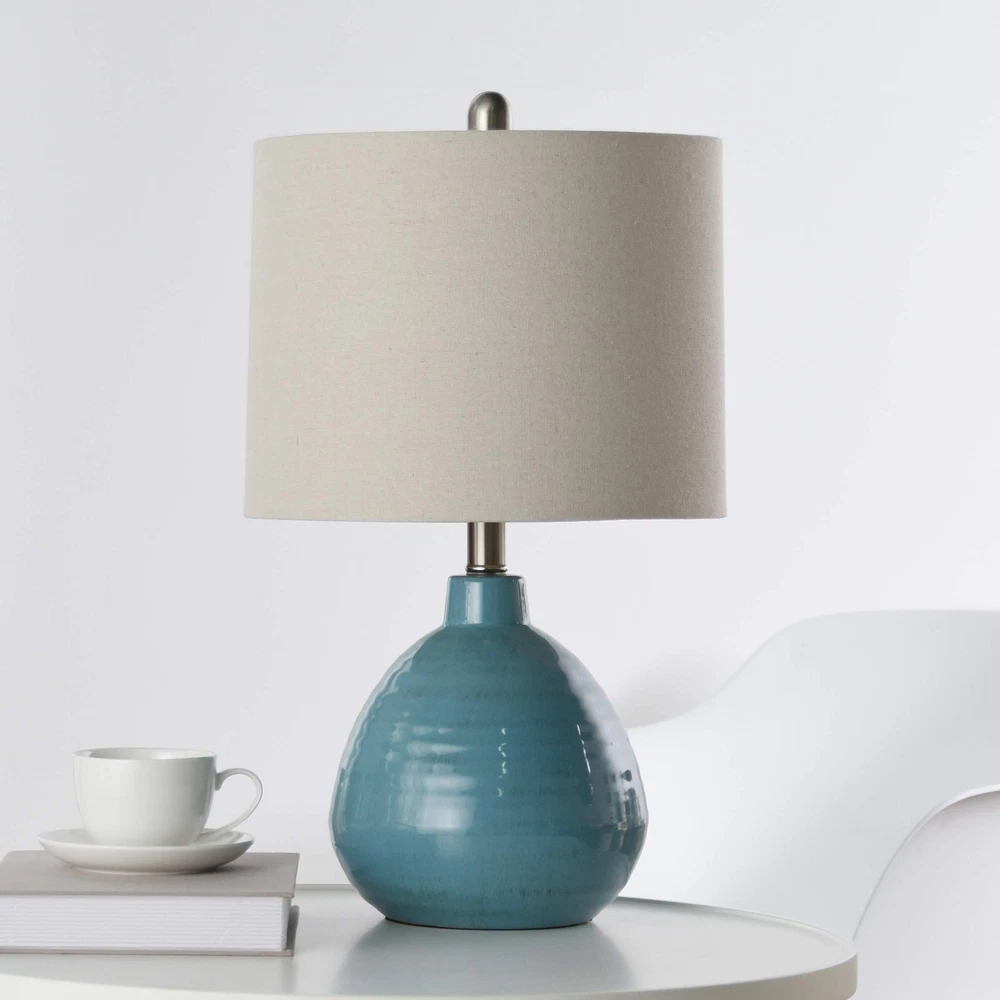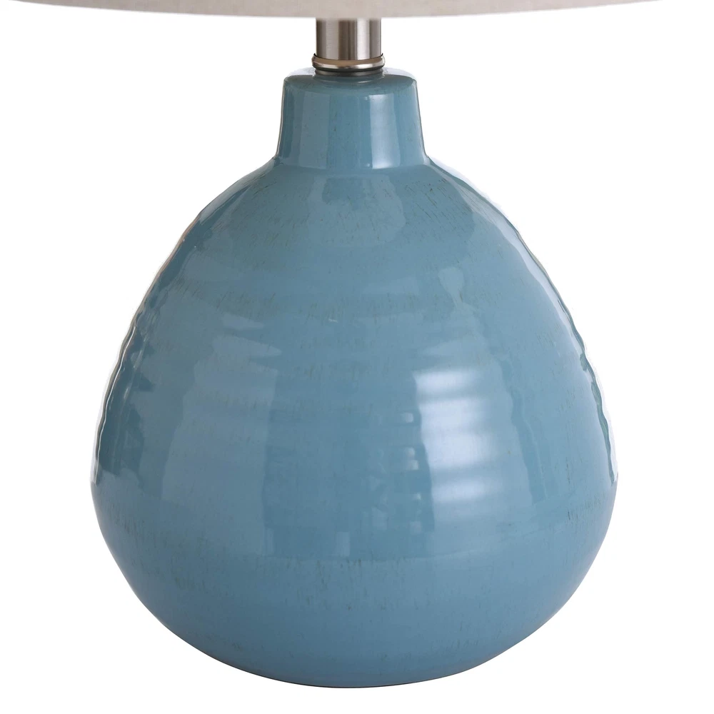 L22019DDSAM Ceramic, Seaside Storm Blue Finish, Beige Hardback Linen Shade Ta...