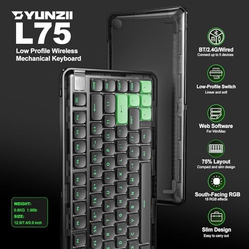 Return Policy Fast Delivery Trusted seller L75 Low Profile Wireless Mechanical Keyboard,75% Portable,Bluetooth/Type-C/2.4G,Gasket Structure,Custom RGB Backlit for Mac/Win (Black, Red Switch) Product Description Ultra-Slim 75% Layout Keyboard & 2200mAh Battery: The L75 Low Profile Wireless Mechanical Keyboard has a streamlined 81-key layout that closely resembles commonly used laptop keys, shrinking the layout to increase desktop space while retaining essential daily functions. Built-in 2200mAh battery can be used for up to 65 days in Bluetooth mode with the backlight RGB turned off. Slim and lightweight design helps user to work and play easily anyw. Full Key Hot Swappable Keyboard with Red Switches: L75 Low Profile Keyboard features a full key hot swappable socket and supports 3-pin low switches. Hot-swappable design allows for easy switches replacement without soldering, giving user more freedom of play. customized Red Switch triggers in milliseconds and has a comfortable mechanical feel, with a strong rebound of the keys. Tri-Mode Connectivity & Win/Mac System: The L75 Wireless Keyboard supports Bluetooth, 2.4G wireless, and USB wired connection modes and is compatible with Mac, Windows, Linux, Android, and iOS, allowing for seamless switching between up to 5 devices. Simultaneously supports Windows/MAC dual system switching in seconds without lagging. Long press the mode toggle can switch Win/Mac system easily. Gasket Mount Keyboard: Featuring a precision gasket-mounted construction, the L75 keyboard adopts three layers of acoustic padding, including PE Sandwich Foam, IXPE Switch Pad, and Button silicone pad, to reduce cavity sound and optimize the feel of tapping. With Double-Shot PBT low profile keycaps, the keycaps are self-curved to fit your fingertips better. This allows every keyboard user to have a purer and more enjoyable typing experience. Programmable& Backlight RGB: The RGB keyboard features more than 18 built-in backlight modes and south facing LEDs. Keyboard Enthusiasts can freely define the keys, macro, and RGB in Win/Mac system. Multiple dynamic RGB effects and programmable software let user experience unlimited customization fun. Shipping Returns Payment Shipping Shipping is FREE to all addresses other than APO/PO boxes in the lower 48 states. All our stock ships from US-based warehouses. Shipped via USPS or UPS (depending on location and package weight) Unless stated otherwise, all orders will ship within 24-72 hours of your payment being processed. Check our feedback to see the great reviews of FAST shipping we offer. Returns Seller does not accept returns Payment We currently accept payment via eBay managed payments only. Once payment is cleared, we will dispatch your shipment within 1-3 business days. Please refer to the "Shipping" tab for more information regarding shipping speed to your destination.