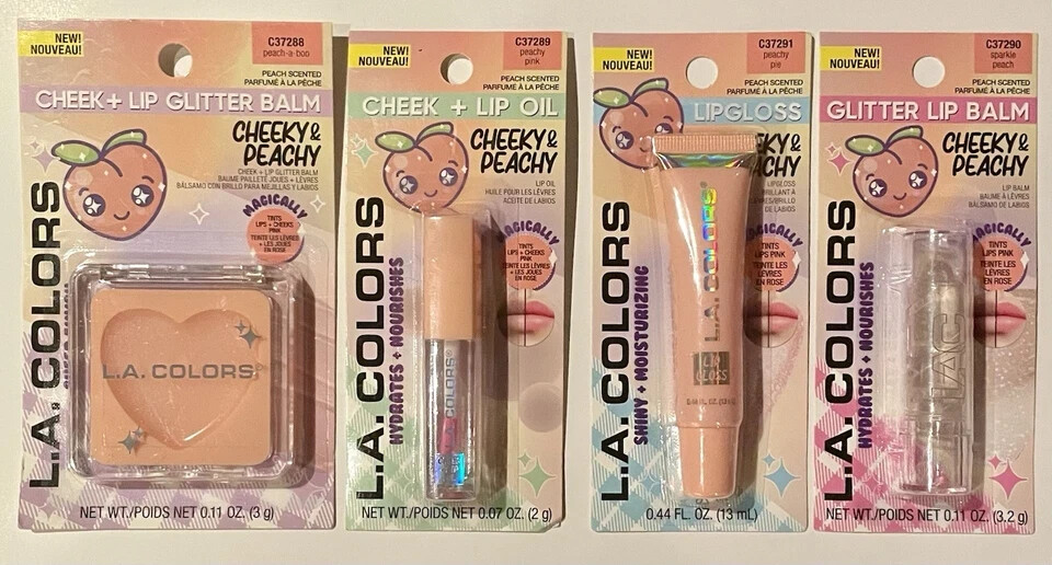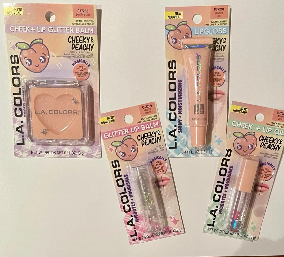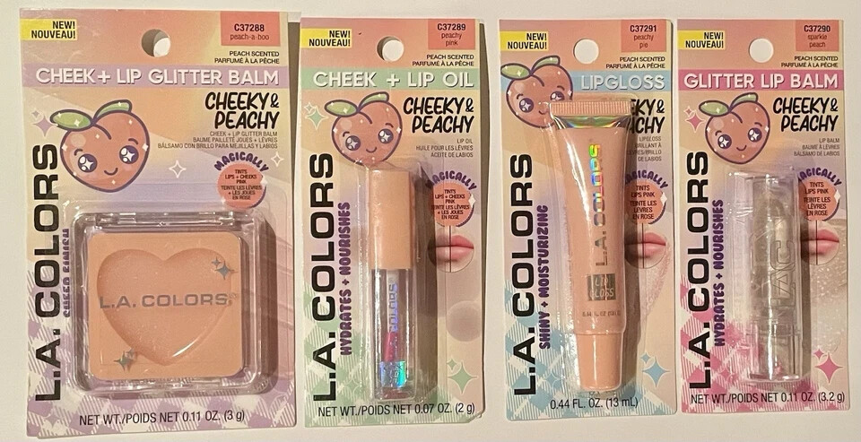 L.A. Colors Cheeky & Peachy Set Lip Balm Gloss Oil Glitter Tints Pink Magically . 4 pcs see picture