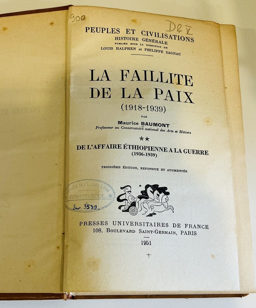 HomeLA FAILLITE DE LA PAIX 1918-1939 Maurice Baumont Leather Hardcover 1951 Edition