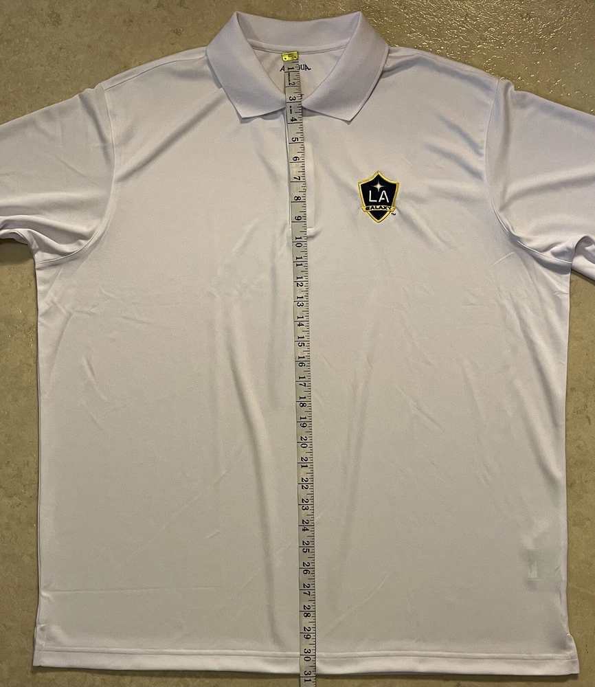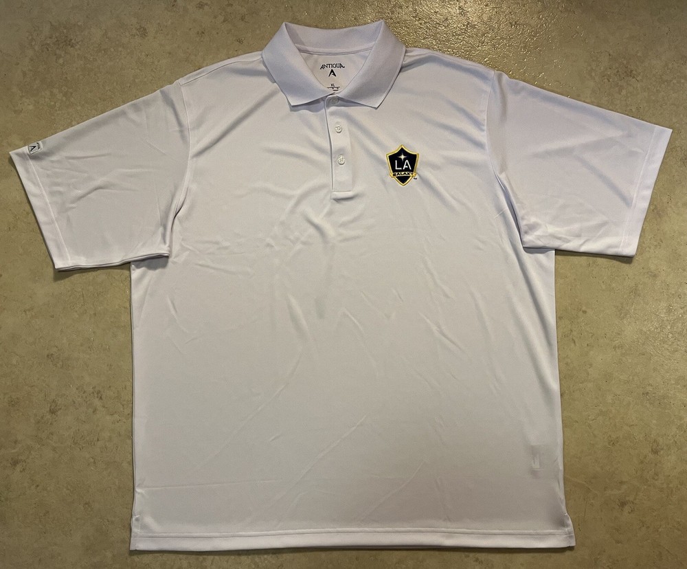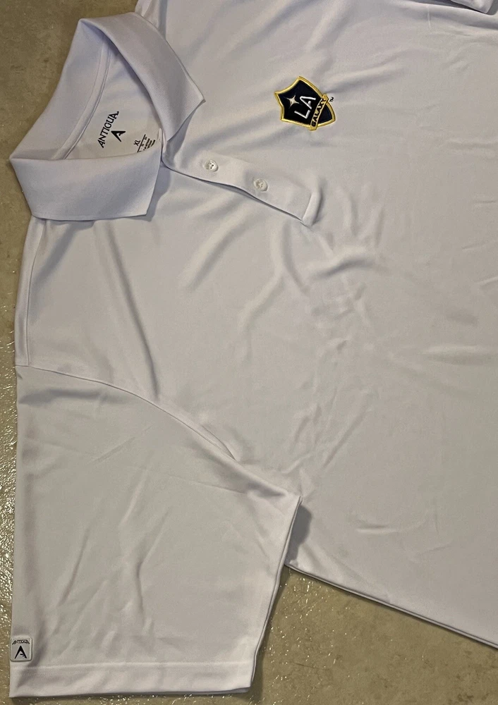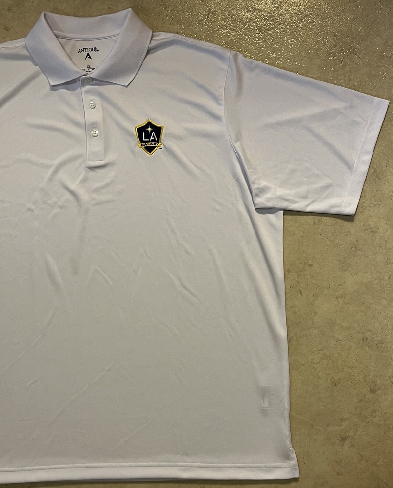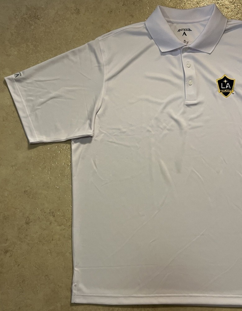 Los Angeles LA Galaxy Soccer Antigua Polo Golf Shirt Short Sleeve White Logo XL ✅ Good Condition! ✅ Look at all photos to see the condition of the item. Please feel free to ask any questions you may have. ✅ Ready to ship!