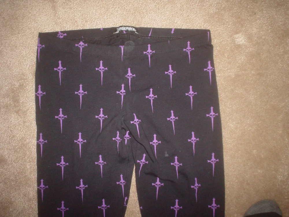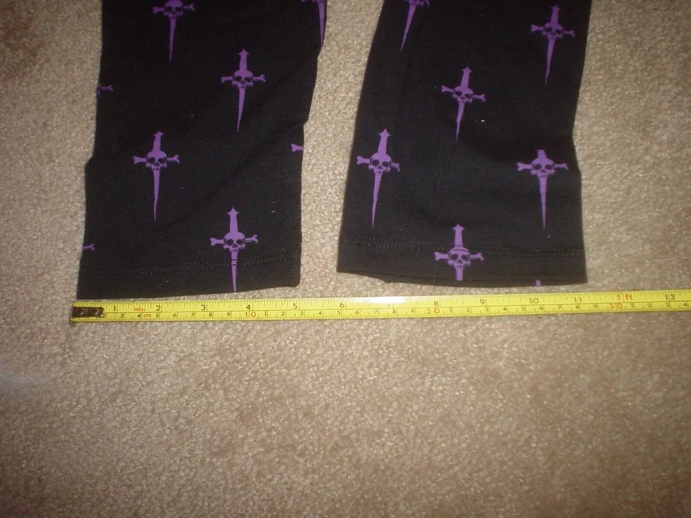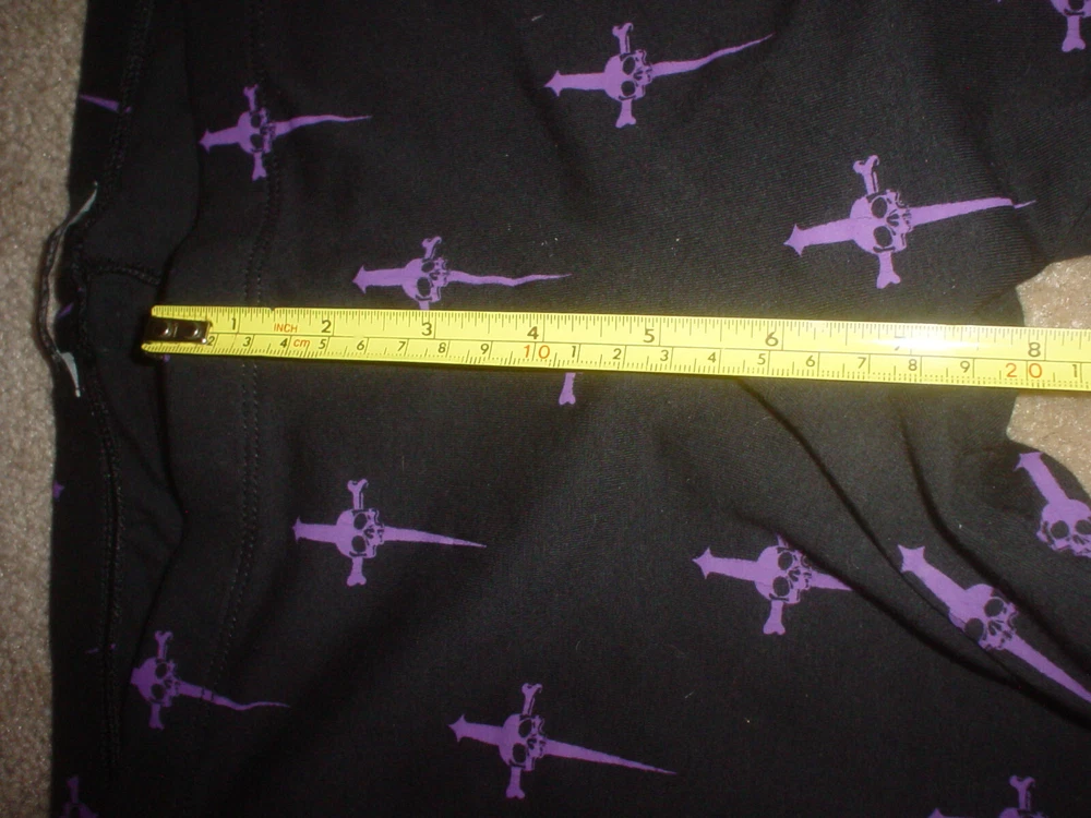 Up for Auction is: SKULL LEGGINGS THIS IS A (LIP SERVICE - STYLE 56-205) STRETCH LEGGINGS. PULL-ON STYLE WITH STRETCH ELASTIC WAIST BAND & STRETCHY FABRIC. FABRIC STRETCHES BOTH DIRECTIONS. NEW - NO TAGS. SLIGHT WRINKLING, LINT, ETC. FROM STORAGE. (PLEASE SEE ALL PICTURES & ZOOM IN FOR CLOSER VIEWS). LADIE'S/ JUNIOR'S SIZE 11. SMOKE-FREE PET-FREE PERFUME FREE WAIST MEASURES ABOUT 31.5" OR SO DEPENDING ON WHERE YOU MEASURE - UNSTRETCHED (ABOUT 15 3/4" OR SO ACROSS ONE SIDE OF WAISTBAND AT THE VERY TOP AS SHOWN IN PICTURES WITH TAPE MEASURE - NOT SURE WHAT RISE THE WAIST IS??) - FRONT RISE MEASURES ABOUT 7 7/8" OR SO FROM TOP OF WAISTBAND TO CROTCH SEAM. LENGTH ALONG OUTER SIDE MEASURES ABOUT 35.5" OR SO LONG. INSEAM LENGTH MEASURES ABOUT 28 1/4" OR SO LONG. MEASUREMENTS ARE DEPENDING ON WHERE YOU MEASURE - HARD TO GET EXACT. (PLEASE SEE ALL PICTURES). **PLEASE MAKE SURE IT WILL BE THE RIGHT SIZE & LENGTH IS ACCEPTABLE TO YOU BEFORE BUYING**. NOT SURE HOW TIGHT IT WILL FIT ON YOUR LEGS?? - DEPENDS ON YOUR LEG SIZE. PLEASE ASK WITH ANY QUESTIONS. WILL BE FOLDED FOR SHIPPING. LEGGING IS MADE OF A STRETCHY BLACK FABRIC WITH PURPLE SKULLS. (SELF: 90% COTTON & 10% SPANDEX. CONTRAST: 93% COTTON & 7% SPANDEX). THIS LEGGING IS VERY RARE, UNIQUE, & AWESOME. (ZOOM IN ON PICTURES TO SEE THE DESIGN, COLORING, FEATURES, ETC.). CHECK OUT THE OTHER AWESOME CLOTHING, SHOES, & OTHER ITEMS WE ALSO HAVE LISTED TO TEMPT YOU WITH!!! YOU WILL BE THE ENVY OF ALL!!! SOLD AS IS - NO RETURNS Good Bidding, Please see my other Ebay Items, Thanks Fionasjoy. I COMBINE ON SHIPPING ALSO