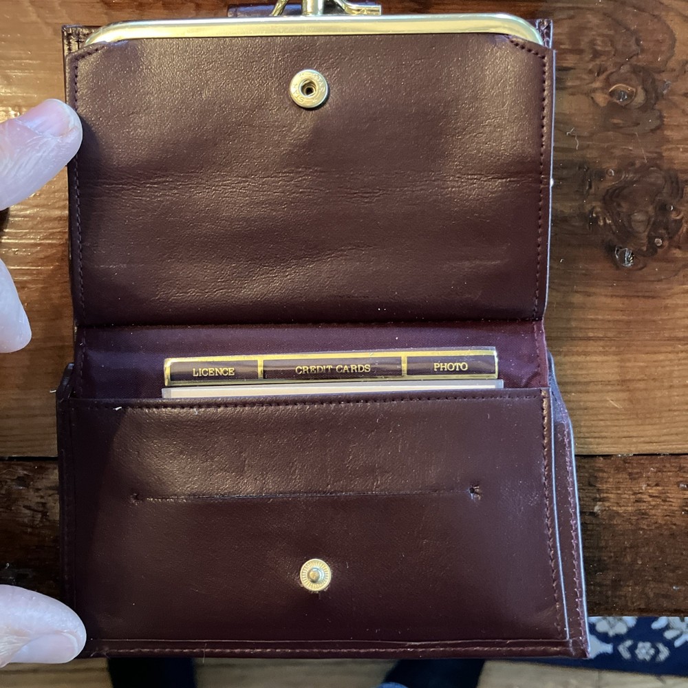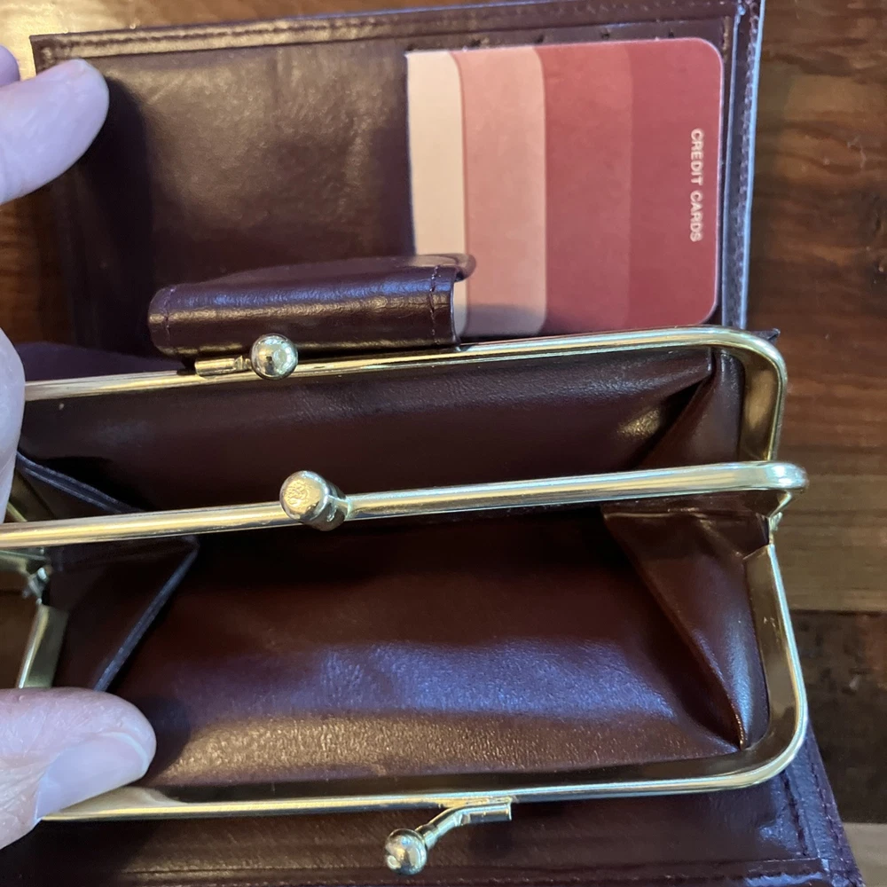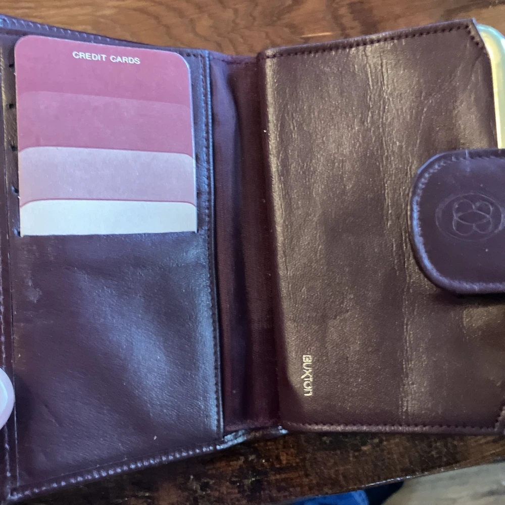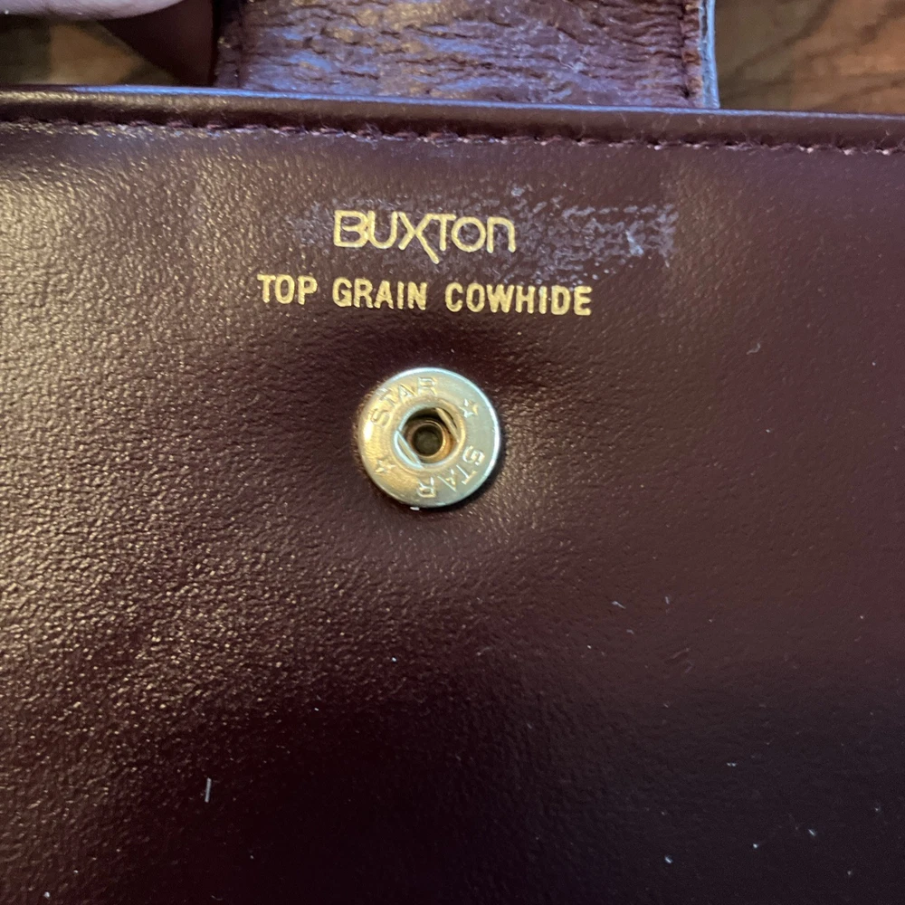 The Lady Buxton Wallet from the Esteem Collection is a luxurious leather clutch in a mellow touch cowhide maroon color. This vintage-inspired wallet features a solid pattern with a unique triple frame design, making it a stylish accessory for women. Made with high-quality leather, this one-size wallet from the United States is a fashionable and functional choice for everyday use.