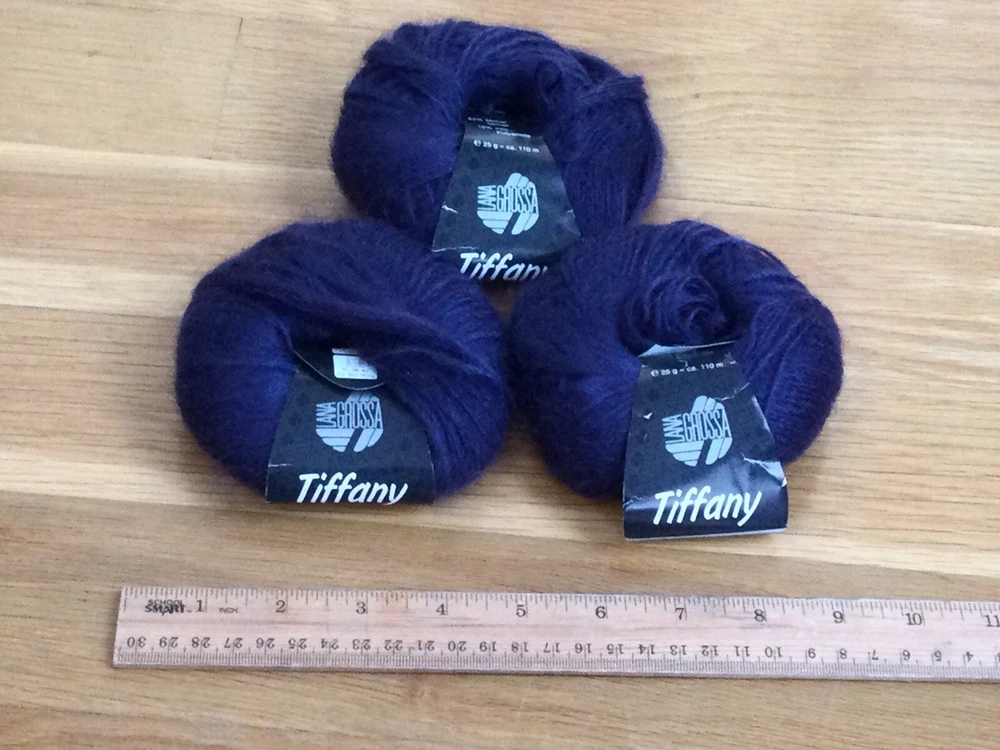 Luxurious LANA GROSSA yarn in the color "Tiffany" Purple 03, made from a blend of silk (26%) and mohair (64%) and polyester (10%). From a non-smoking and pet-free home. Condition is NEW OLD STOCK. Vintage/ retired color. Please see photos to supplement this description. Ruler indicates size. I am happy to combine shipping so please see my other listings (including lots of vintage and collectible items this week INCLUDING OTHER YARN!!). Thanks and good luck!!