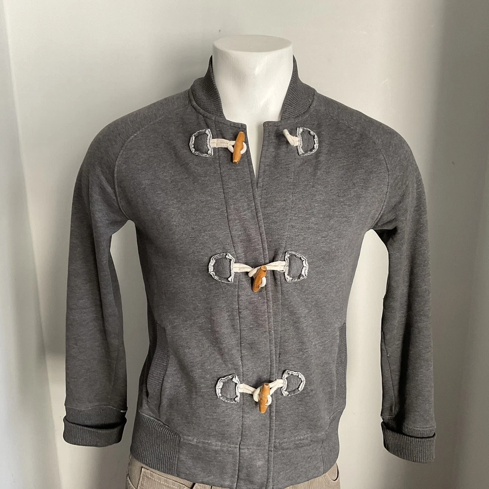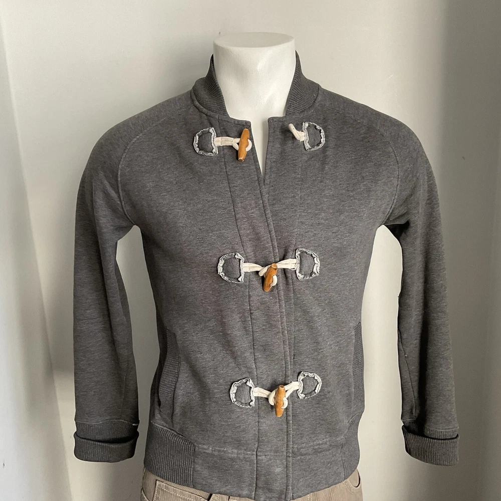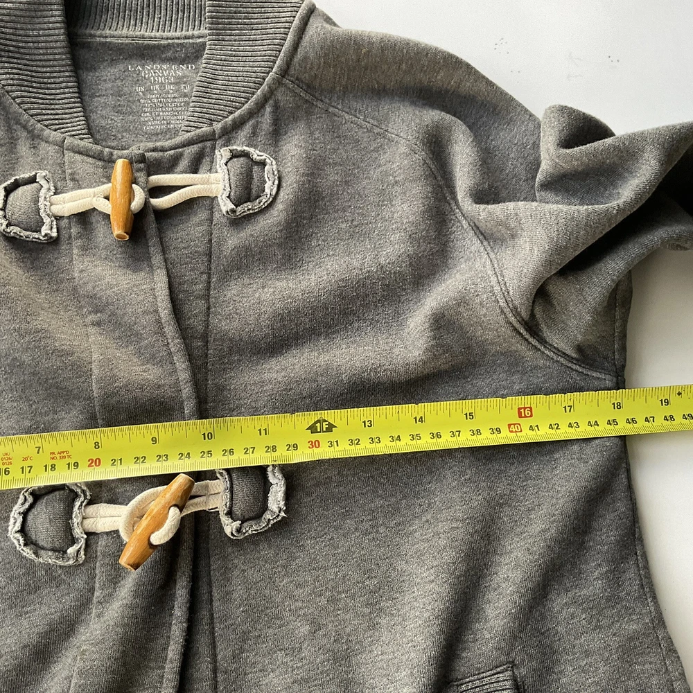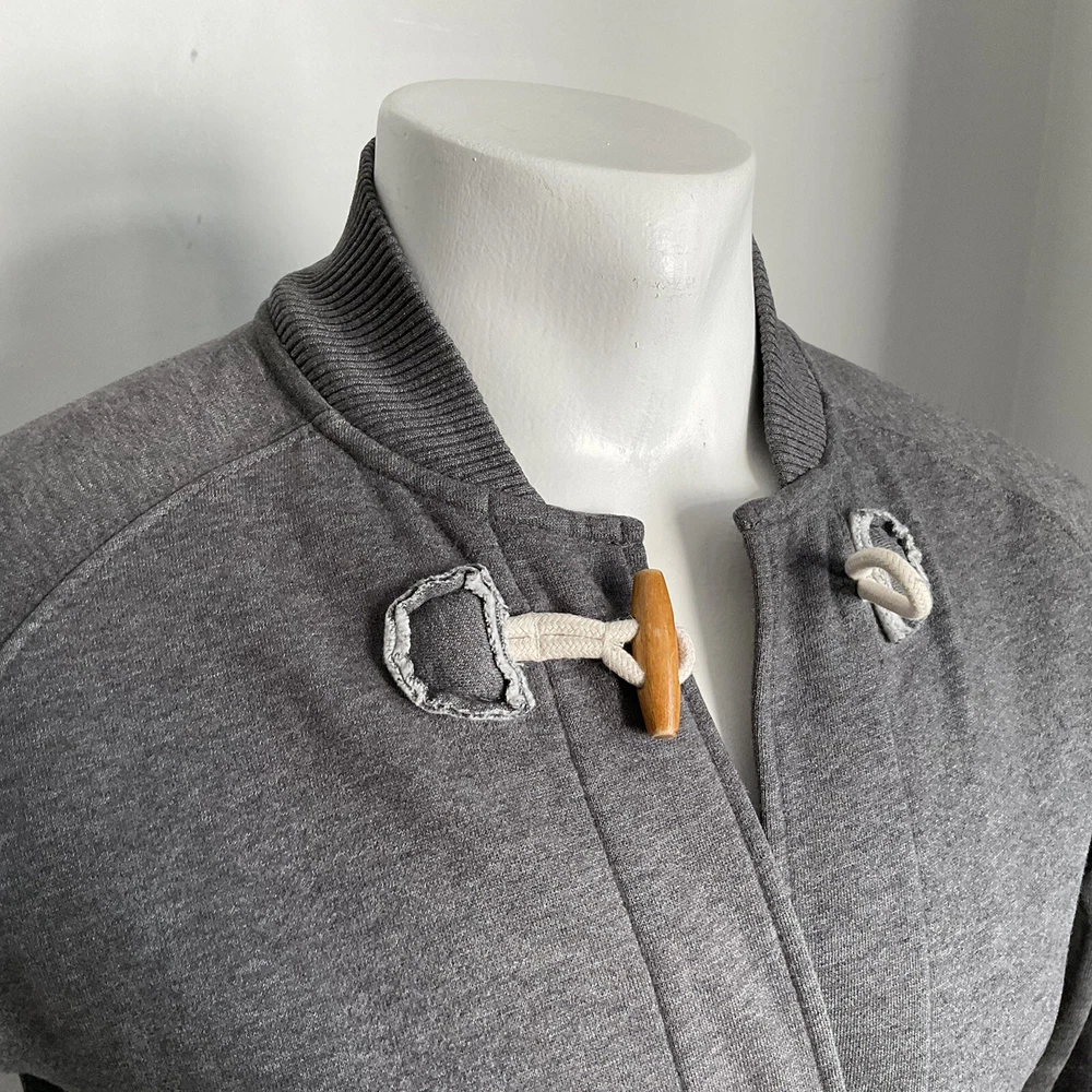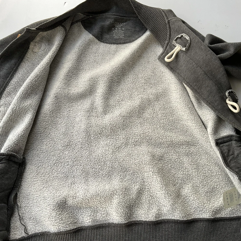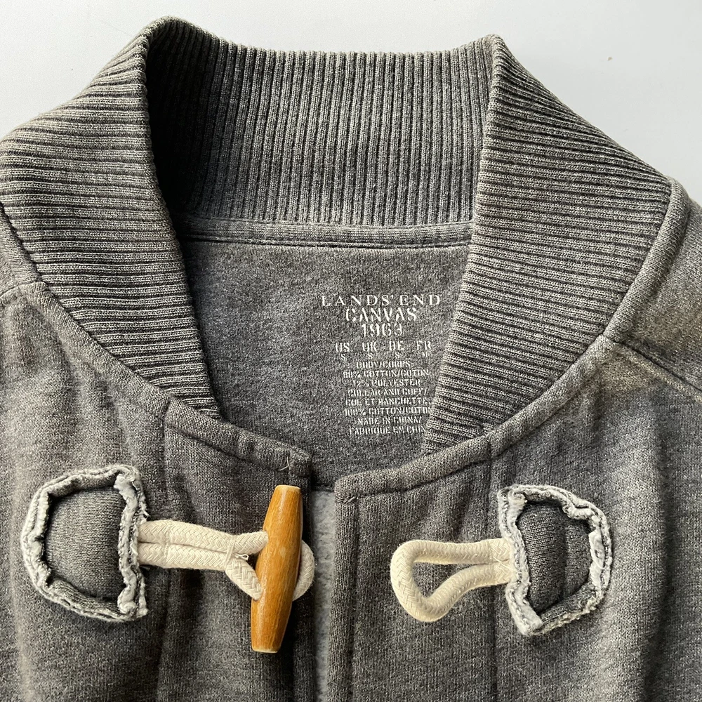 LANDS END MENS CARDGIAN Light JACKET Small GREY Duffle Button Up CASUAL Fleecy