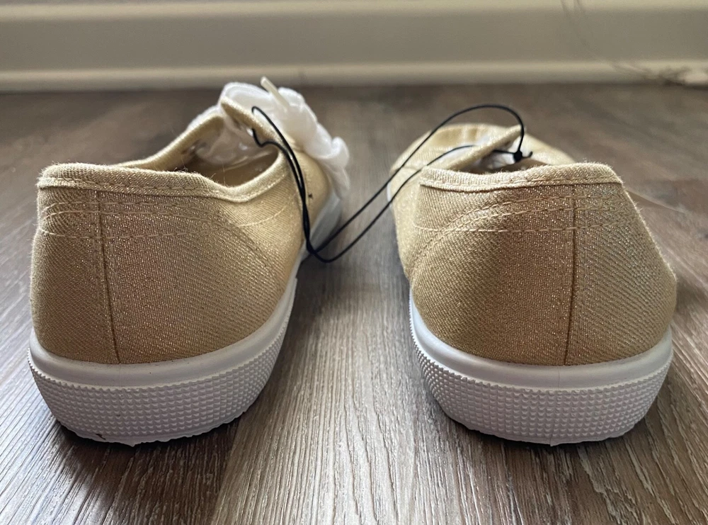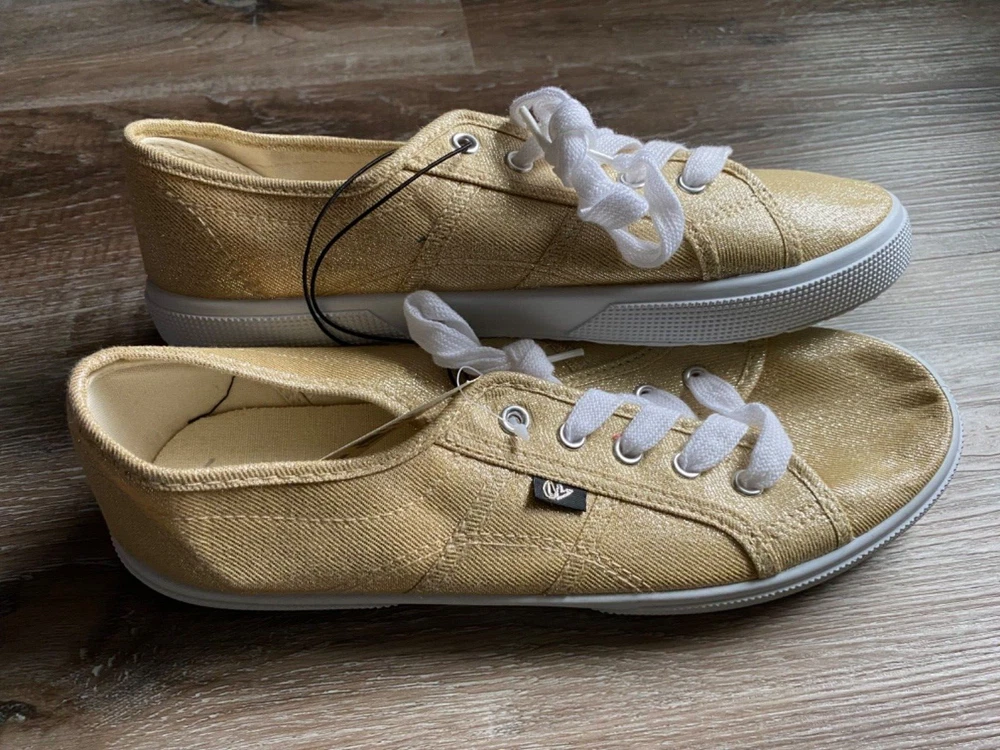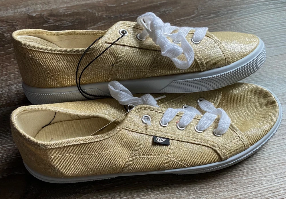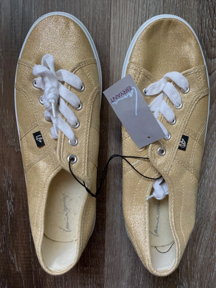 LANE BRYANT Casual Shoes~Ladies Size 10W~10 Wide~S921240~Gold Sparkly~Sneakers Ladies LANE BRYANT casual shoes *Size: ladies size 10 Wide (10W) *Style: S921240 *Color: sparkly gold with white soles and laces *Uppers: synthetic/textiles *Lining: Textile *Outsole: Rubber *Condition: NEW with NO original box *We have a smoke-free home