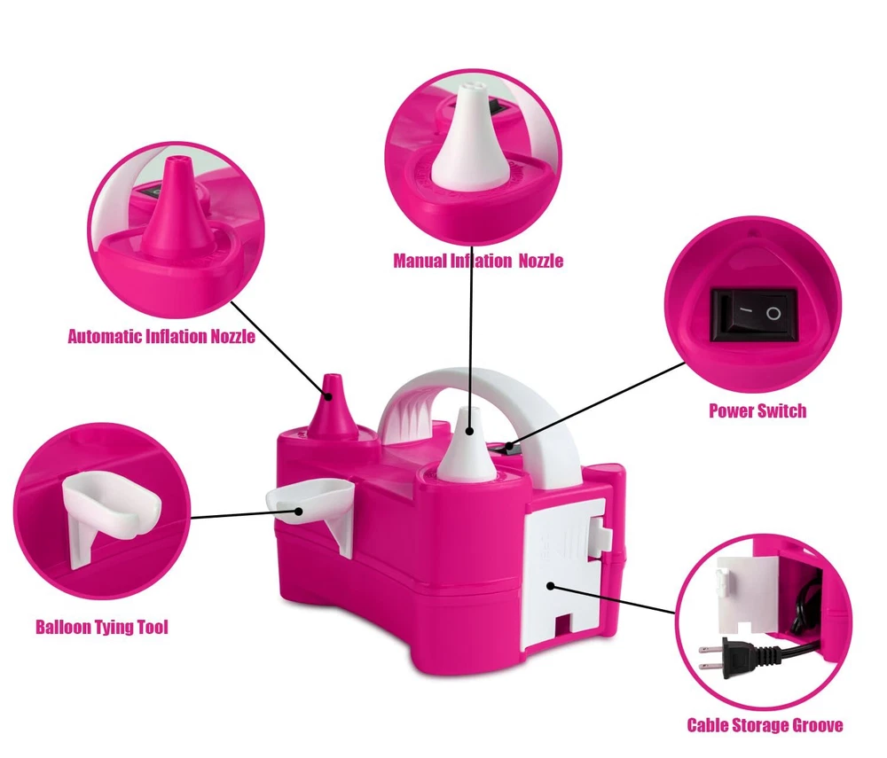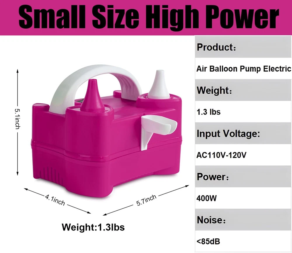 LANGXUN Balloon Pump Electric, Balloon Inflator Pump Electric with Balloon Tying Tool in One, Protable High Power Balloon Air Pump with Dual Nozzle for Birthday Party Balloon Decorations Easy to use and saves you time, it is the perfect balloon party decoration supply. LANGXUN's electric pump is an indispensable aid when you need to use a large number of balloons to create party arches or balloon garlands for birthday or wedding decorations. Help you save 70% of production time. UPGRADE STYLE & FASHIONABLE COLORS: Introducing the latest upgraded electric balloon pump by LANGXUN. It is 40% lighter and 50% smaller in size compared to other brands, making it easier to carry and store. Available in pink, white, rose red, lake blue, dark blue, and green, there are 6 stylish colors to choose from. EFFICIENT BALLOON PUMP & INFLATION CHOICE: With 110~120v voltage and 400W power, this electric balloon pump inflates balloons quickly with dual nozzles, completing two balloons in just 3 seconds. The upgraded balloon tying tool makes knotting balloons faster and easier. Save 80% of your time and effort with this high-quality electric balloon pump. PERFECT PARTY COMPANION: The LANGXUN balloon air pump is suitable for both latex and decorative balloons. Ideal for inflating a large number of latex balloons for occasions like balloon arches, Balloon Garland Kit or balloon columns. It is often used for decorations at birthdays, baby showers, holidays, parties, celebrations, weddings, and more. The perfect gift for friends and family! DUAL NOZZLES AND 2 INFLATION MODES: The dual nozzle design allows two people to work simultaneously. The TOUCH-ON mode is suitable for inflating a small number of balloons. Simply press the micro switch lightly to inflate the balloons and release the port to stop. The automatic mode is designed for continuous inflation and can be operated by a switch. SAFETY WARNING & WARRANTY: 1. When plugging in, keep the machine out of reach of children under 6 years old. 2. Continuous operation may cause the motor to overheat and potentially damage the machine. Do not let the machine work continuously for more than half an hour; rest for 5 minutes is better. 3. One-year quality warranty service is provided. Shipping from the USA All of our products are shipped from the USA, ensuring quick delivery to your destination. Payment We offer the following payment methods: PayPal, credit card, bank transfer, and eBay's secure payment system. Free Shipping & Free Returns Shipping within the USA is FREE. Additionally, any return is absolutely free for you. Risk-Free Purchase You have the option to return an item within 30 days without any justification. We cover the return shipping costs! Fast Shipping We ship immediately upon receipt of payment. Generally, the package is delivered within 2-3 days in the USA. If it takes longer, we will contact you. Quality and Costs Made in Europe, USA, China No customs fees or additional charges Total satisfaction guarantee Invoice with declared VAT available upon request in .pdf format Feedback Your feedback is very important to us. After you pay for your purchase, you will automatically receive positive feedback from us.