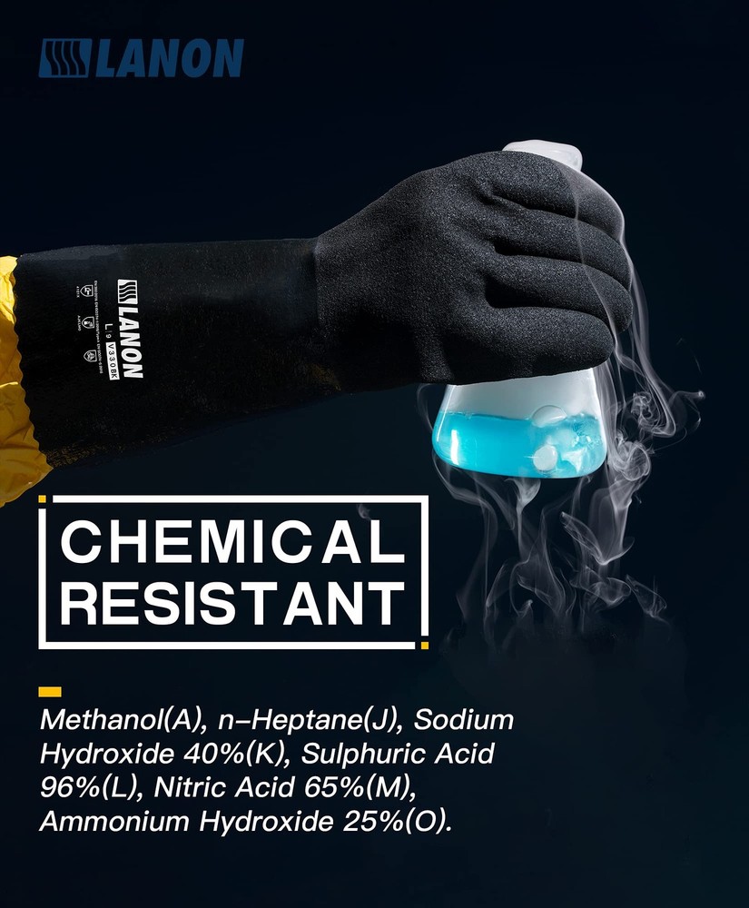 Specification: Brand: Material: Nitrile Coated + Cotton Liner Color: Black Style: Multi-Purpose Use Type: Reusable Hazard: Heavy Duty Washing Way: Machine Washable (Air Dried) Maintenance & Cleanup: 1. The gloves can be hand washed with neutral detergent and running water. If machine washed, please don't put them into the dryer, just air dried. 2. The nitrile gloves should be stored at low temperatures, in a dry and dark place. Cautions: 1. Don't use with chemicals without prior trials other than those tested. 2. Don't wear sharp ornaments like the diamond ring and other jewelry. 3. Keep away from sharp items like needles and toothpicks. 4. These gloves can't be used as heat insulation gloves, don't use them outside of 14℉-104℉. DURABLE MATERIALS - The ergonomically shaped reusable work gloves are made of imported nitrile, offer high resistance to chemicals, acid, alkali, solvent, and mechanical risks, also can maintain the high performance for the oily environment. 15 GAUGE SEAMLESS COTTON LINER - With 15 gauge seamless cotton liner, these heavy duty gloves are breathable, easy to pull on and off. You will be able to wear these gloves for long periods of time without discomfort. The extended cuffs provide effective barrier protection for wrist and forearm from splashes, abrasives and dangerous chemicals. GREAT GRIP - The non-slip MicroFoam textured palm chemical resistant gloves offer good grip to grab the wet and greasy parts. They passed the highest level 4 (at least 8000 cycles) of abrasion resistance test, level 1 (1.2 times) of blade resistance test, level 2 (25 force) of tear resistance test and level 1 (20 force) of puncture resistance test. MULTIPURPOSE - The two-tone designed NBR work gloves are latex free, better solutions for people with sensitive skin. They are ideal for handling chemicals, petrochemical, mechanical manufacturing, mining, agriculture, farm, gardening, construction, automotive industry, forestry and more. CERTIFICATIONS - LANON industrial gloves for hand protection are certificated by CE 0075 CAT III, with Standards EN 388:2016, EN 420, EN ISO374-5:2016, EN ISO374-1:2016/Type A, and meet CA Prop.65 regulations for phthalates. It also passed the FDA regulation test.