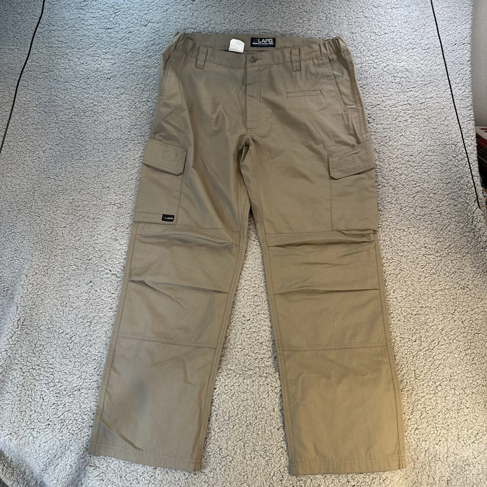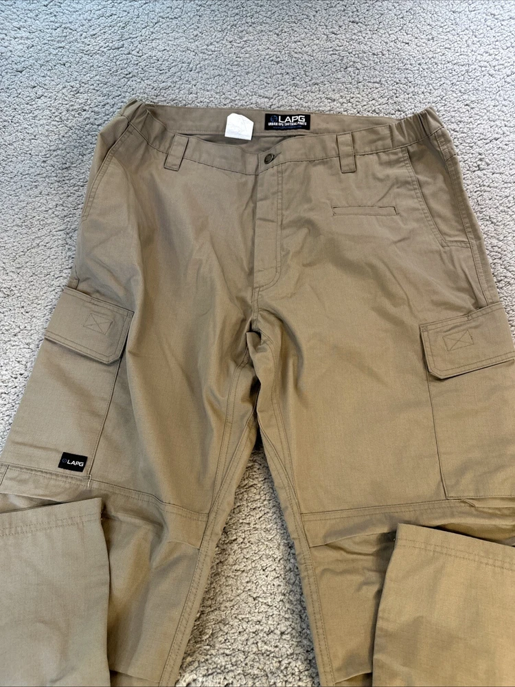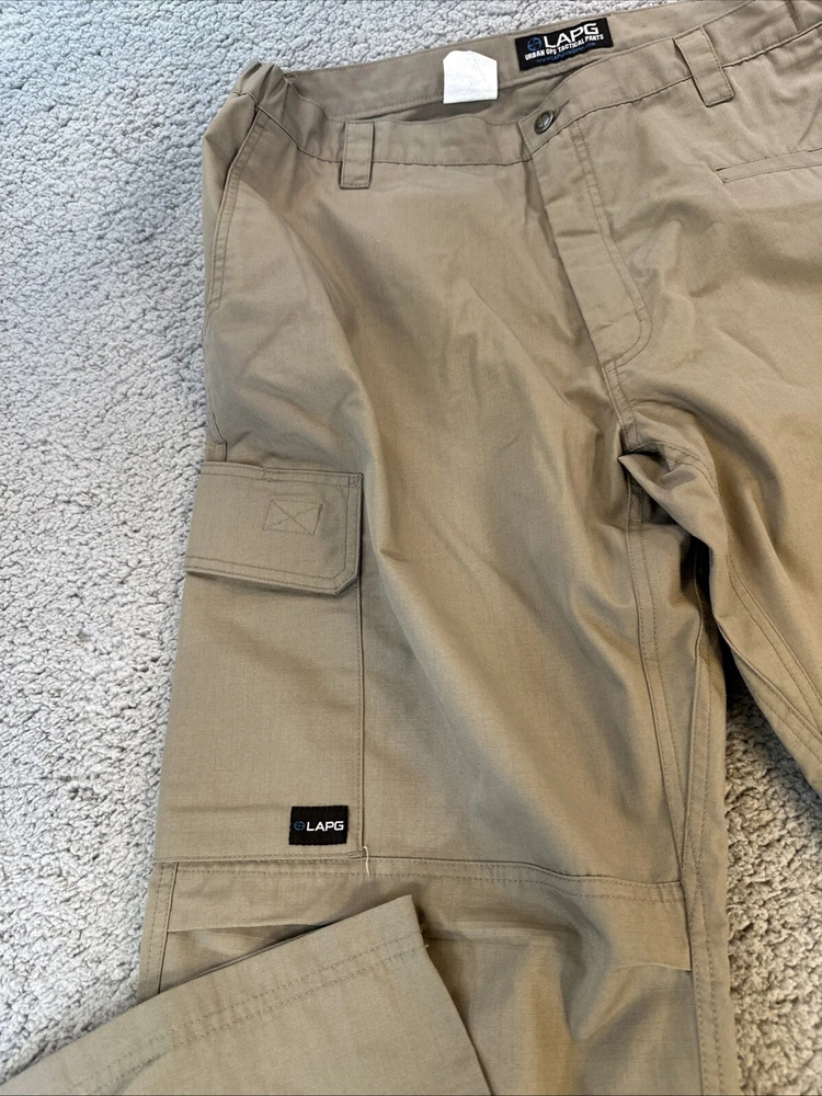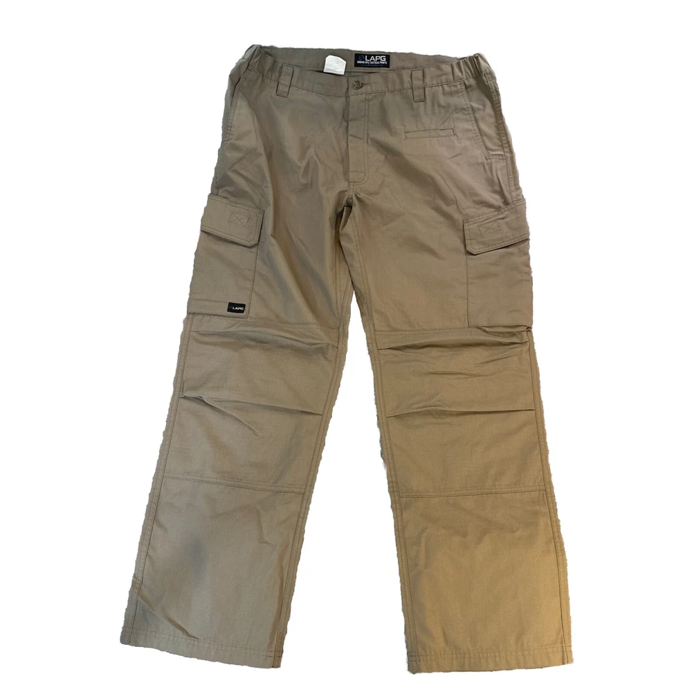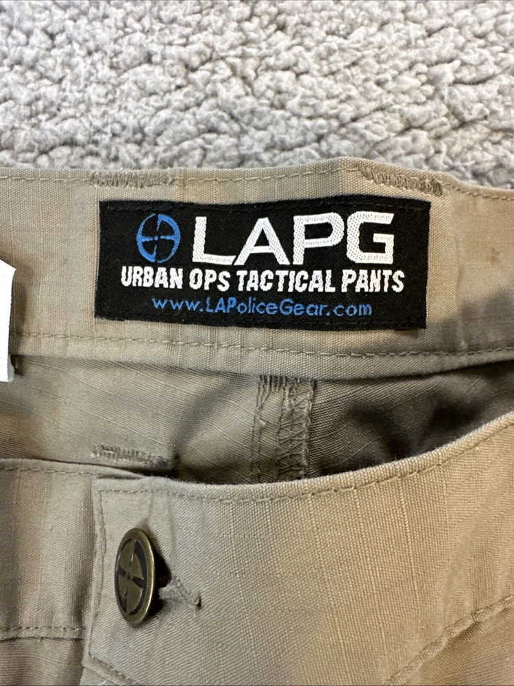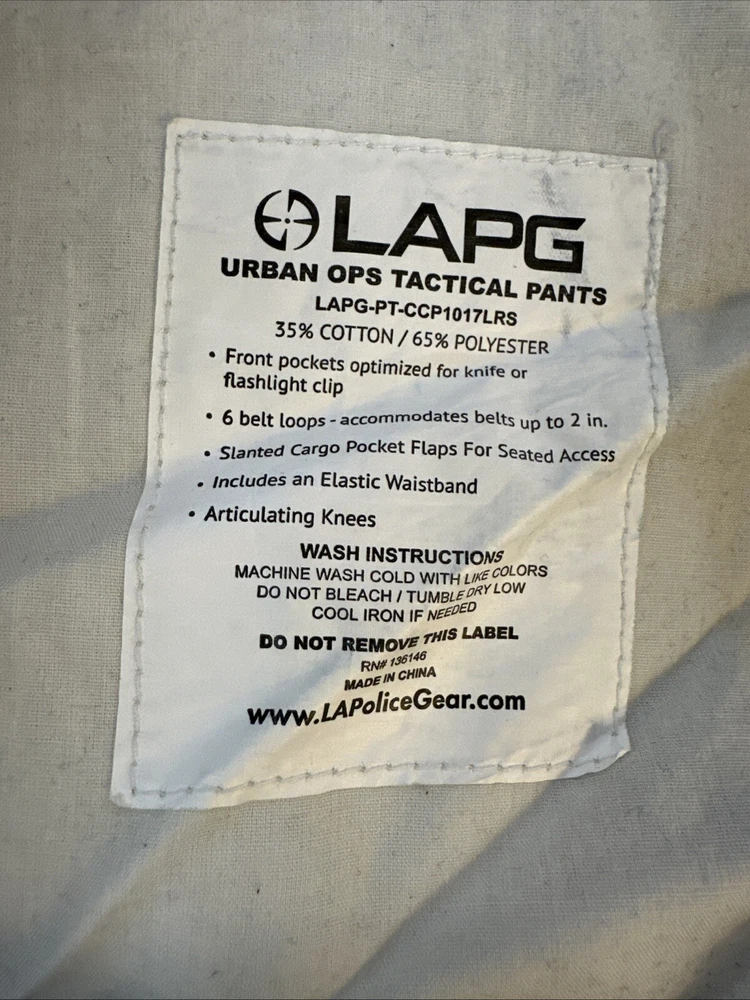 Elevate your style with these men's LA Police Gear pants in black. Tailored with a regular fit, straight leg style, and mid-rise, these pants are perfect for any occasion whether it be casual, workwear, or travel. The pants feature an elastic waistband and ripstop pleats for added comfort and durability. The pants also come with a cargo pocket and zipper closure for secure storage. The fabric type is canvas, and the material is a blend of polyester and cotton. These pants are machine washable and have a waist size of 40 inches. The design is solid with accents of buttons and a flat front. The pants have a unit quantity of 1, and the model number is RN#136146. The pants are perfect for those who want to show off their love for the army, USA, or city theme. My pictures do not show the true color. These are a beautiful dark black in color. They never been worn. Just had to assign preowned because I did not buy them from a store. But these have never been on a person.