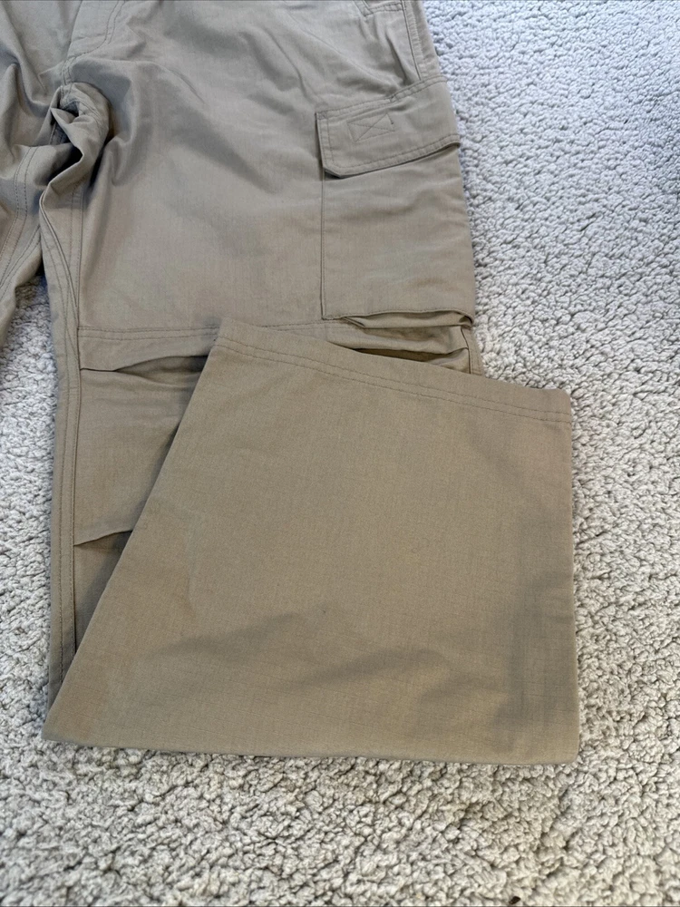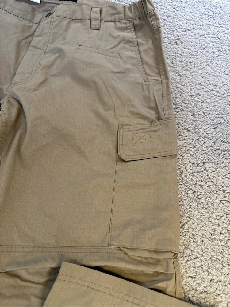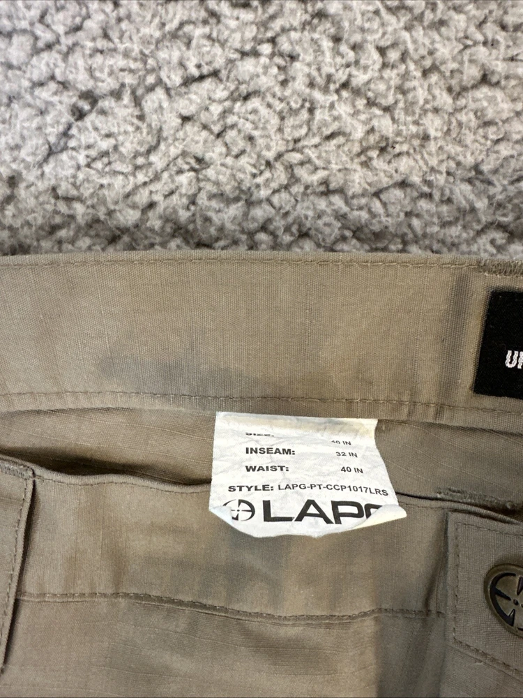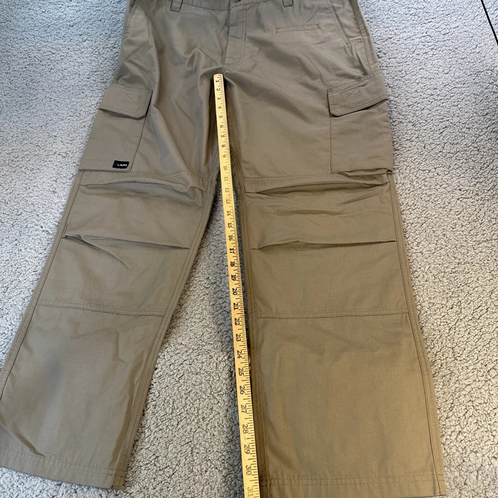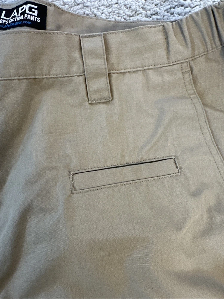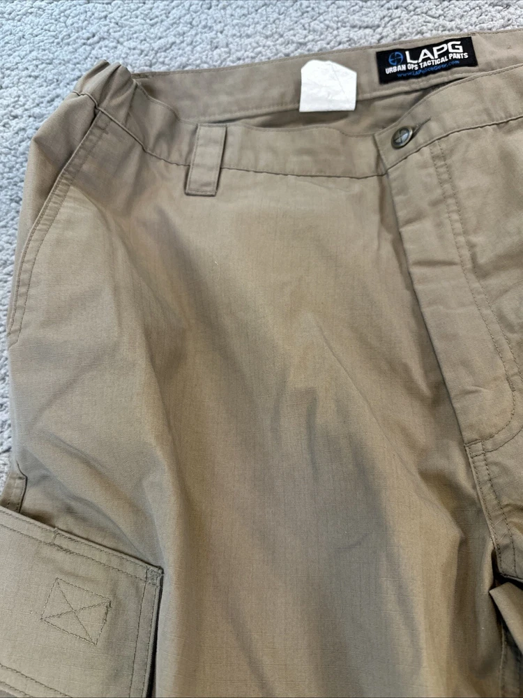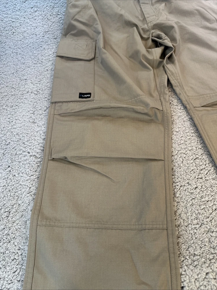 Elevate your style with these men's LA Police Gear pants in black. Tailored with a regular fit, straight leg style, and mid-rise, these pants are perfect for any occasion whether it be casual, workwear, or travel. The pants feature an elastic waistband and ripstop pleats for added comfort and durability. The pants also come with a cargo pocket and zipper closure for secure storage. The fabric type is canvas, and the material is a blend of polyester and cotton. These pants are machine washable and have a waist size of 40 inches. The design is solid with accents of buttons and a flat front. The pants have a unit quantity of 1, and the model number is RN#136146. The pants are perfect for those who want to show off their love for the army, USA, or city theme. My pictures do not show the true color. These are a beautiful dark black in color. They never been worn. Just had to assign preowned because I did not buy them from a store. But these have never been on a person.