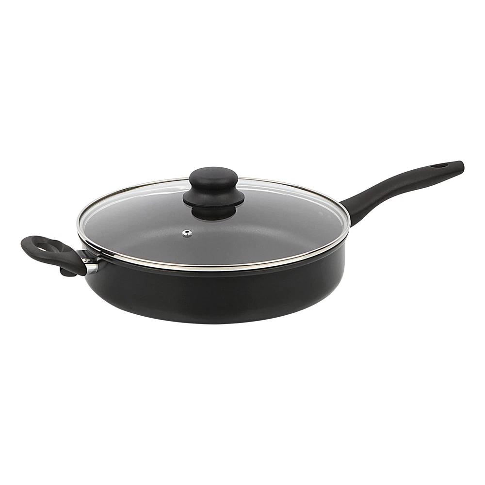 The Mainstays 4-Quart Non-Stick Jumbo Cooker with Glass Lid is ideal for everyday, multi-use at home. The jumbo cooker heats quickly and evenly with its aluminum body and the two layers of non-stick interior coating makes it easy to cook with and easy to clean up. Cool touch handles, securely attached with robust rivets, offer easy and comfortable handling. It's great for cooking your favorite one-pan meals, whipping up a serving of pan-fried chicken, or making a breakfast scramble for a delicious and hearty breakfast. It's dishwasher safe, but hand washing will prolong the life of the non-stick coating. Update your kitchen essentials with the Mainstays 4-Quart Non-Stick Jumbo Cooker with Glass Lid. Build your kitchen from the ground up with all the cookware, bakeware, tools, dinnerware and other items you need to create a useful cooking and dining arrangement. The Mainstays kitchen collection focuses on colorful and decorative design applied to simple basics, keeping your daily life vibrant and efficient. This category includes such a wide variety of products that you may want to make a list of the kitchen items you need and use the product filters on the left side of the page to browse more efficiently. This way, you'll get to see all the relevant Mainstays kitchen products in each subcategory to find the best match for your lifestyle. Mainstays 4-Quart Non-Stick Jumbo Cooker with Glass Lid, Black Cool-touch handle provides a comfortable grip 4 qt capacity is ideal for everyday Suitable for all cooktops except induction Riveted handle for strong connection Non-stick coating for easy cooking and clean up
