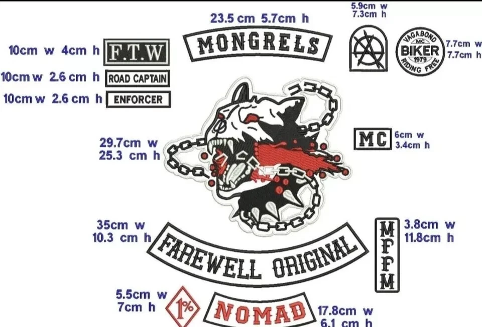 LARGE backing mongrels dogs FAREWELL ORIGINAL Embroidered biker Patches.