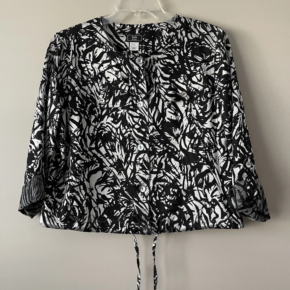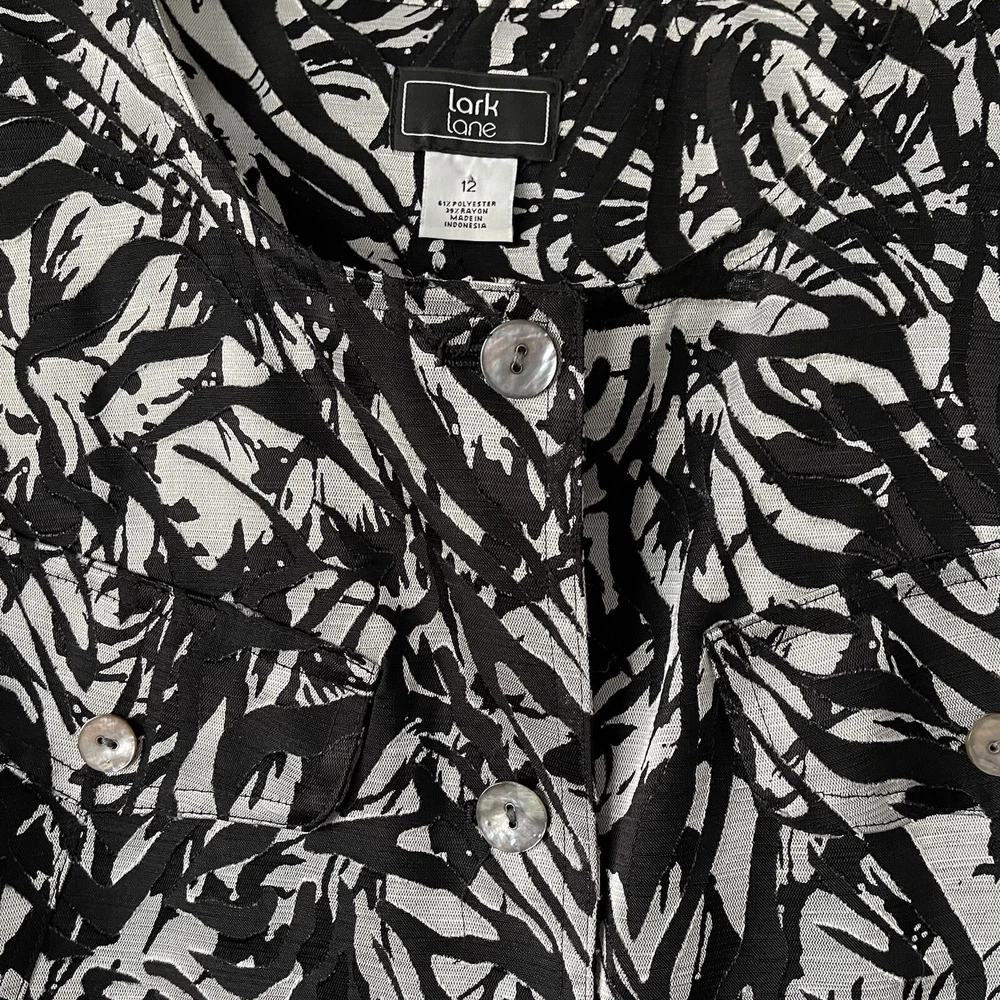 Lark Lane Womens Button Up Shirt Shacket Jacket Roll Tab Sleeve Size: 12 Condition : Excellent Measurements : 22: Arm pit to Arm Pit 20.5 " Length from center back neckline to bottom of hem Beautiful Mother of Pearl Buttons 2 Front Chest Pockets Roll Tab Sleeves We ship within 3 days, usually sooner. Items are stored in a smoke-free, pet-free home. If you have questions, feel free to contact us through Ebay. Thank you for shopping with us! Have a great day!! Please note measurements are approximate and given as a courtesy. Check out the other items we have listed on Ebay: thankfulthrifter