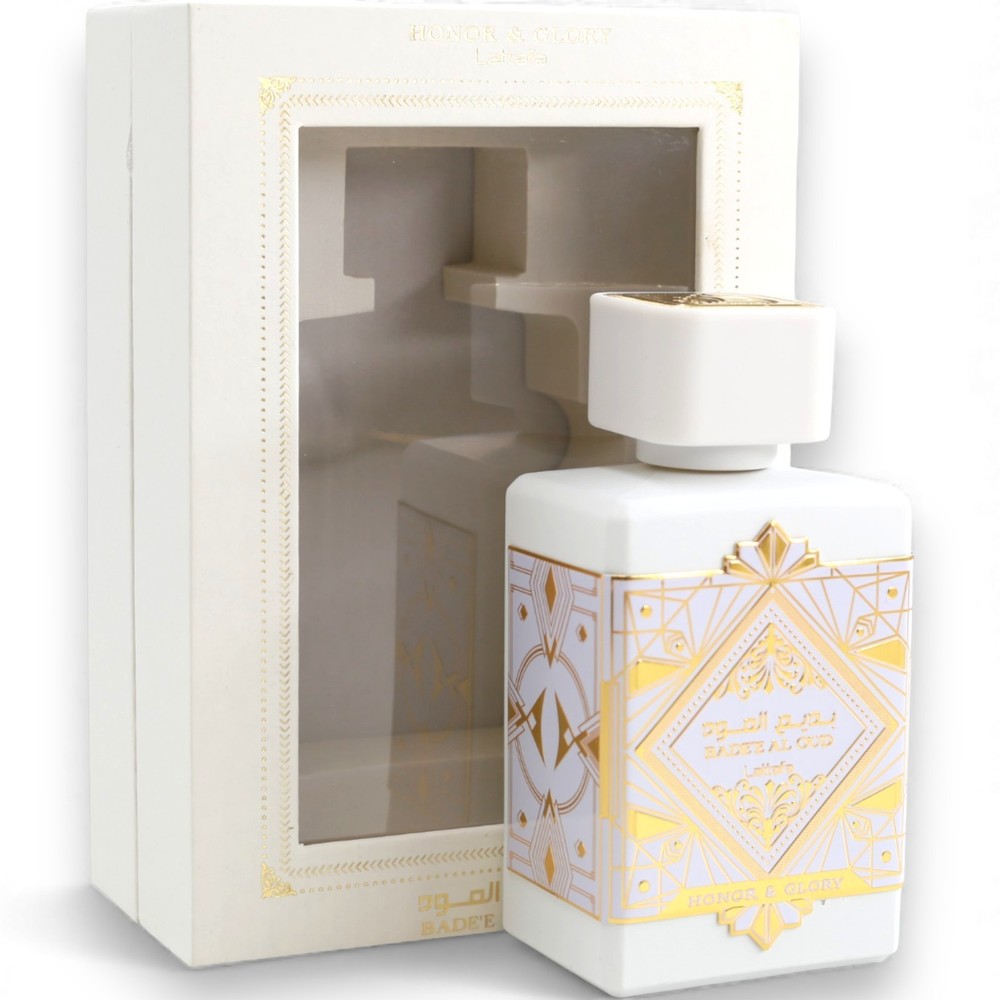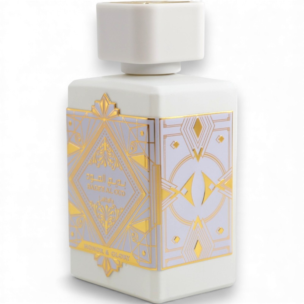 LATTAFA BADE'E AL OUD HONOR & GLORY EAU DE PARFUM 3.4 OZ Unisex • Amber Spicy • 100ml / 3.4 fl oz Fragrance Profile Brand: Lattafa Fragrance Family: Amber Spicy Gender: Unisex Fragrance Notes Top: Pineapple, Crème Brûlée Heart: Benzoin, Cinnamon, Turmeric, Black Pepper Base: Vanilla, Sandalwood, Cashmeran, Moss Why You’ll Love It Delicious sweet opening with pineapple and creamy dessert notes. Spicy heart adds warmth and character without being too heavy. Soft, cozy, long-lasting base of vanilla and woods. Ideal for autumn and winter, evenings out and date nights. How To Use Apply 3–5 sprays on clean, dry skin. Works great for both casual and dressed-up occasions in cooler weather. Layer with vanilla or gourmand body lotion to enhance the sweetness. Customer Experience Commitment Fast dispatch and careful packaging to protect the bottle. Items are handled in a clean, smoke-free environment. We answer all messages within 24 hours. If anything is wrong with your order, please message us first – we will fix it. We always work hard to earn your 5-star positive feedback.