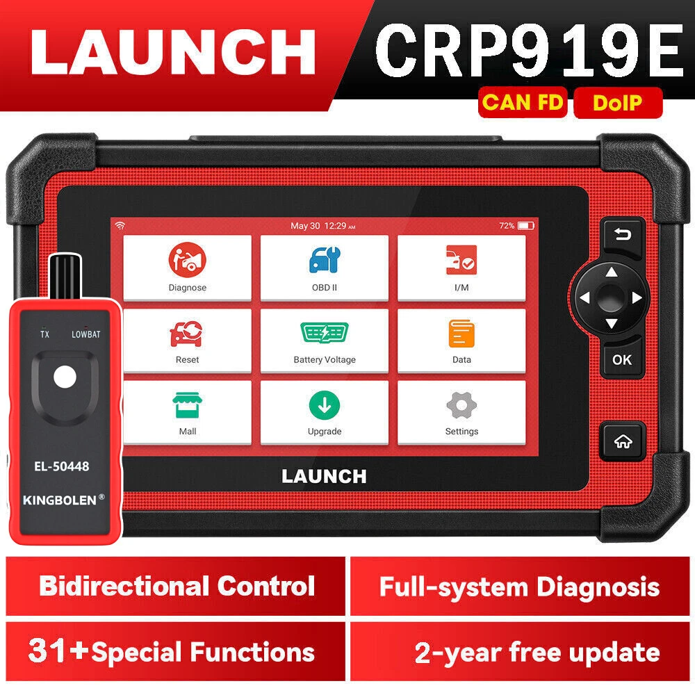 ✅ Note:Multiple package options,pls choose what you want! Package option 1: CRP919E(All System + 31 Reset) Package option 2: CRP909E(All System + 28 Reset) Package option 3: CRP129E PLUS(All System + 8 Reset) Package option 4: CRP123E PLUS(All System + 3 Reset) ALL IN ONE LAUNCH CRP919E BIDIRECTIONAL SCAN TOOL WITH ALL SYSTEM DIAGNOSTIC & 31+ RESETS LAUNCH SCANNER CRP919E, 2024 NEW RELEASED SCAN TOOL ABOUT LAUNCH: LAUNCH is the global market share of automotive diagnostic tools is the first!Focusing on automotive scanners for 26 years,it has more than 1000 international patents.Trustworthy! Have you ever been bothered by these problems: The device is always unable to scan the required system. The reset functions of your diagnostic scanners are not enough. Limited vehicle compatibility of your automotive scan tools cannot cover more business. The scanner with active control in the market is too expensive. Don’t feel sad! LAUNCH CRP919E OBD2 scanner can drive your trouble away! All in all, if you are considering to get an all-in-one diagnostic tool with limited budget, LAUNCH CRP919E is the FIRST and the BEST. This CRP919E OBD2 Scanner supports All systems Diagnoses, All OBD-II Functions,31+ Reset Functions, Bidirectional Control, CANFD&DOIP, FCA Autoaut h, Renault Security Gateway Function , ECU Coding, Key Programming, PMI Function(Programmable Module Installation),Camera Function,2 Years Update Included!!! Updated Hardware: Android 10.0 OS, 4-Core Processor, 3G/32G Memory(64GB Extended), 6100mAh Battery, 7” Touch Screen. CRP919E has better hardware configurations, wider vehicle coverage, and longer battery life than CRP909E. High lights: Auto Vin, One Click Update Online, Full Bidirectional Control/Active Test, New CANFD & DoIP Protocols, Newly Add PMI Function,Newly Add Camera Function,Covering 100+ Car Brands, Support 11 languages, 31+ Commonly-used Reset Functions, OE-level All System Diagnosis,Key Programming, 4 in 1 Live Data Graph, Record and Playback live data, 2-Year Software Upgrade Included,5 Years Support, 1996-2023 Wide Vehicle Coverage, Full 10 OBD Modes, Online Repair Database, Battery Voltage Monitor,Abundant Online Repair Database,Auto Auth for FCA SGW. CRP919E is a cost-worthy all in one diagnostic OBD2 scan tool. Good News!!!We changed from 1-year upgrade Period to 2-year upgrade in September 21st 2022 on CRP919E, which saving you almost 300 dollars, you can use the latest version and functions during these 2 years begin the time you registered. Even if expires after 2 year and you don't want to update any more, you can still use the last version before expiration all the time and most features that do not require to connect internet. Good News!!!We changed from 29 RESET FUNCTION to 31 RESET FUNCTION in September 21st 2022 on CRP919E, which meet your need in the most degree. And crp919e is 5 more rest function than crp909E. Good News!!!We provide OE-level ECU coding in September 21st 2022 on CRP919E,you can get it by upgrading software module in APK.It allows you to reset the adaptive data, match the replaced ECUs, unfold the hidden functions, etc. Good News!!!We provide Renault Security Gateway Function in April 2023 on CRP919E,which can cover more car models. Recently Released Software Update: PORCHE(V24.05)2022/9/28: New Functions: 1) For Cayenne-9YA (asof2018) added the low-temperature circuit bleeding and A/C compressor running-in functions for the thermal management system and the valve servo motor setting / checking and A/C compressor setting functions for the A/C system. 2) For Panamera (971), added the low-temperature circuit bleeding and A/C compressor running-in functions for the thermal management system and the valve servo motor setting / checking and A/C compressor setting functions for the A/C system.3) For Taycan added cooling circuit emptying and filling cooling circuit bleeding andA/C compressor running-in functions for the thermal management system and the valve servo motor setting/checking function for the A/C system. Recently Released Software Update: FIAT(V37.20)2022/9/29: New Functions: 1) Added Basic Functions for Models Giulia 2018-2021,Stelvio 2019-2021,500X 2016-2022,500BEV 2021,500E 2015 2) Added Actuation Test for Models Giulia 2018-2021,Stelvio 2019-2021,500X 2016-2022,500BEV2021,500E 2015 3) Added Special Functions for year 2021 500X models,including BCM_TPM program left front tire sensor ID,BCM_TPM program spare wheel tire sensor ID,FOBIK ID acquire 4)Added Special Functions for year 2021 Toro model,including AVS ignal Detection,Disable User Inputs,Reset Parameters to Default,EOL Audio Test. Recently Released Software Update: Maserati(V11.55)2022/9/28: New Functions: Added 2021 GHIBLI engine system special functions,ECM engine oil reset and engine oil level initialization. PROFESSIONAL ALL SYSTEM DIAGNOSTIC SCANNER-ONE IS ENOUGH LAUNCH SCANNER CRP919E SAME AS SNAP-ON SCANNERS , POWERFUL FULL SYSTEM SCAN TOOL WITH ECU CODING The LAUNCH CRP919E auto code reader is a cost-effective automotive scanner, that offers OE-level diagnoses on all available electronic systems, which can read/clear codes, data stream, read control module information for ECM, ABS, SRS, TCM, EPB, TPMS, SAS, A/C, BMS, ESP systems, etc. Supports OBD2 Full Functions: It supports OBD ll functions to help you turn off the annoying instrument fault indicator and also can read/clear codes, O2 sensor test, I/M readiness, On-board monitor test, read data stream, display freeze frame data, EVAP system test, retrieve vehicle information (VIN, calibration ID, calibration verification numbers) Supports Full System Diagnostics: Engines/Auto Transmission/Airbags/Immobilizer/Key Coding/ABS/Cruise Control/Instruments/Self Leveling Suspension systems Seats / Doors / Gateway / Steering Angle / Air Suspension / Body Systems / Electronic Power Steering & Motor Assisted / Power Steering / Tyre Pressure / Rain Sensors / 4WD System Stabilizer/Intelligent Parking Assist/Door Motors/Audio