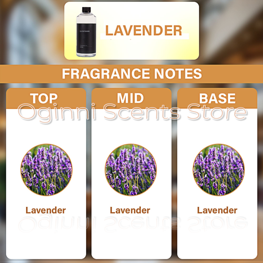 Lavender – Pure Botanical Calm & Herbal Serenity | Premium Diffuser Oil Luxury Scent Description: Immerse your space in the timeless tranquility of Lavender . This single-note botanical fragrance captures the soothing, herbal essence of freshly bloomed lavender fields. From the first breath to the final lingering note, its calming aroma fills the air with peace and simplicity. Lavender is perfect for creating a serene atmosphere, whether you’re looking to relax after a long day, promote restful sleep, or bring a touch of nature’s calm into your home. Fragrance Theme: Herbal Floral Aromatic (Single-Note) Here's why: Lavender from top to base creates a consistent, true-to-nature scent. Herbal and floral character provides both freshness and serenity. Single-note purity makes it clean, authentic, and therapeutic. This fragrance embodies simplicity, purity, and calm—ideal for relaxation, mindfulness, and everyday balance. It could also be classified as: Botanical Herbal: Highlighting lavender’s natural freshness. Calming Floral: Reflecting lavender’s soothing floral side. Therapeutic & Relaxing: Perfect for sleep, stress relief, and meditation. Why You’ll Love It: ✔ Premium diffuser oil crafted for long-lasting scent diffusion ✔ A pure, single-note botanical fragrance for simplicity and calm ✔ Works exclusively with waterless cold-air diffusers ✔ Packaged securely to prevent leaks and preserve freshness ✔ Known for its calming and sleep-enhancing benefits ✔ Safe for use around pets and children How to Use for Best Results: Use only with a waterless cold-air diffuser for optimal performance. Do not add water to the diffuser oil, as this can affect the fragrance quality and diffuser function. Adjust your diffuser settings to your preferred scent intensity, and store the oil in a cool, dry place away from direct sunlight to preserve its fragrance profile.