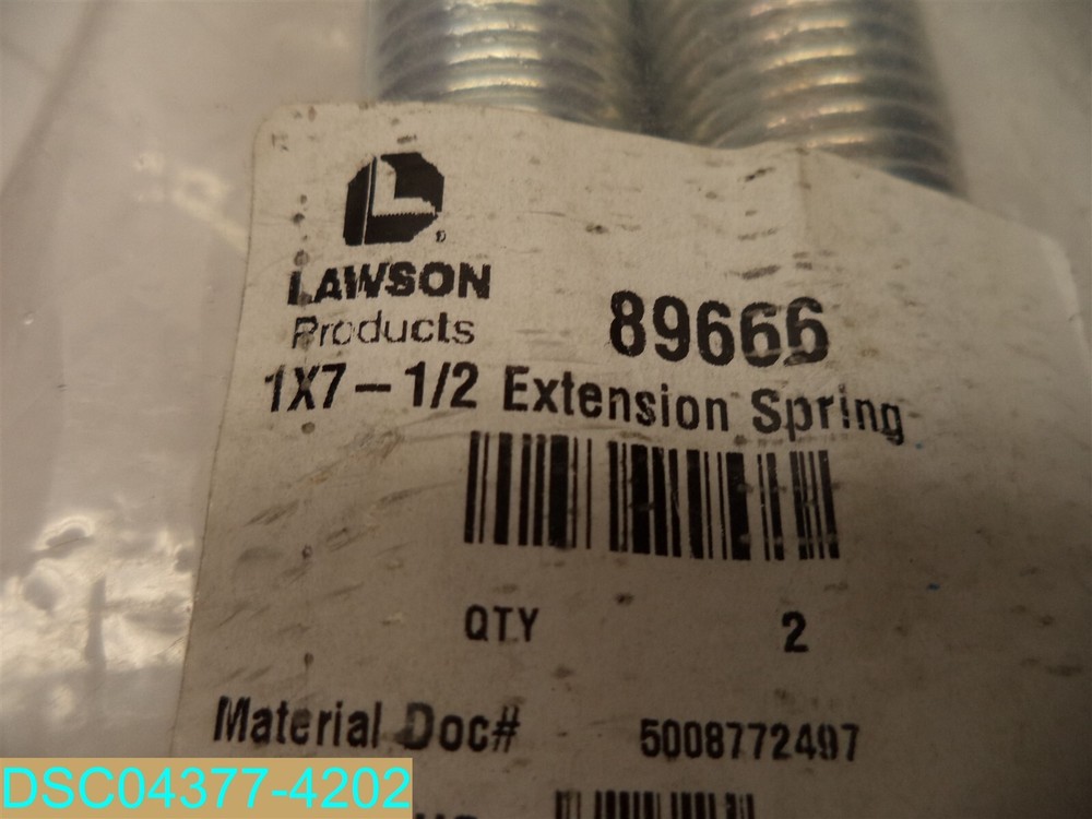 This item is LAWSON 89666 1 X 7-1/2 EXTENSION SPRING This item is new, however, The original packaging may be missing or imperfect. See photos. Includes only what is shown in the picture. Warehouse 1 Shelf: ____________________10271 BOX 900________________________ By taking the action of bidding and or purchasing this item(s) you (the buyer) agree to the following terms and conditions: 1. An item is defined as: The unit or units purchased in the Ebay listing, (it could be a single unit, multiple units, a mixture of units, a variety of units, the incorrect unit or any combination of units not mentioned). It also includes the packaging, or lack thereof, the shipping label, and any contents place in the package by error. 2. The buyer understands that our items are wholesale, overstock, unclaimed, foreclosure purchase or salvage goods. Most boxes have been opened for inspection and photos. If items are listed as new they may not come with original packaging. 3. All items are sold AS IS No warranty or liability is expressed or implied. 4. The seller and / or consigner is not an authorized distributor, reseller or representative of the products featured on this website. All product names, trademarks, brands and logos used on this site are the property of their respective owners. The depiction, description or sale of products featuring these names, trademarks, brands and logos is for identification purposes only and is not intended to indicate any affiliation with or authorization by any rights holder. 5. The buyer agrees to indemnify and hold harmless the Seller and / or Consigner from any and all claims arising out of any conditions or defects for the item or items that they purchased 6. In the event that any clauses or phrases contained here within are ruled out by a judge, the law, a lawyer, jurors, and or any other entity all others remain in effect. 7. If any claim is brought against the Seller and / or Consigner the buyer agrees to pay for any and all costs including legal fees, travel, time, accommodations, and other costs. 8. In any event or circumstance the maximum liability to the Seller and / or Consigner is the purchase price plus cost of shipping plus sales tax if applicable. This amount is not subject to inflation, interest, inconvenience fee or any other price adjustment. 9. The buyer agrees there will be no refunds for any reason outside of the Ebay return policy. 10. The buyer agrees that they are trained, licensed, qualified, and understand how to properly use, dispose of and handle the product in accordance with law and regulations. 11. If the buyer does not agree to these terms and conditions then please do not purchase from us.