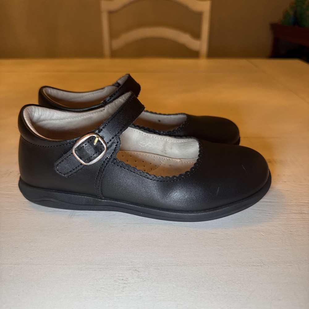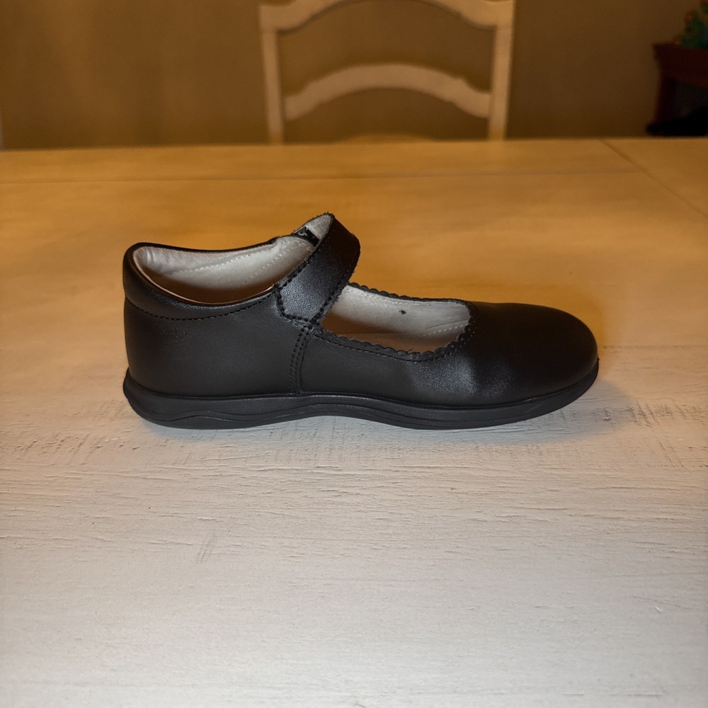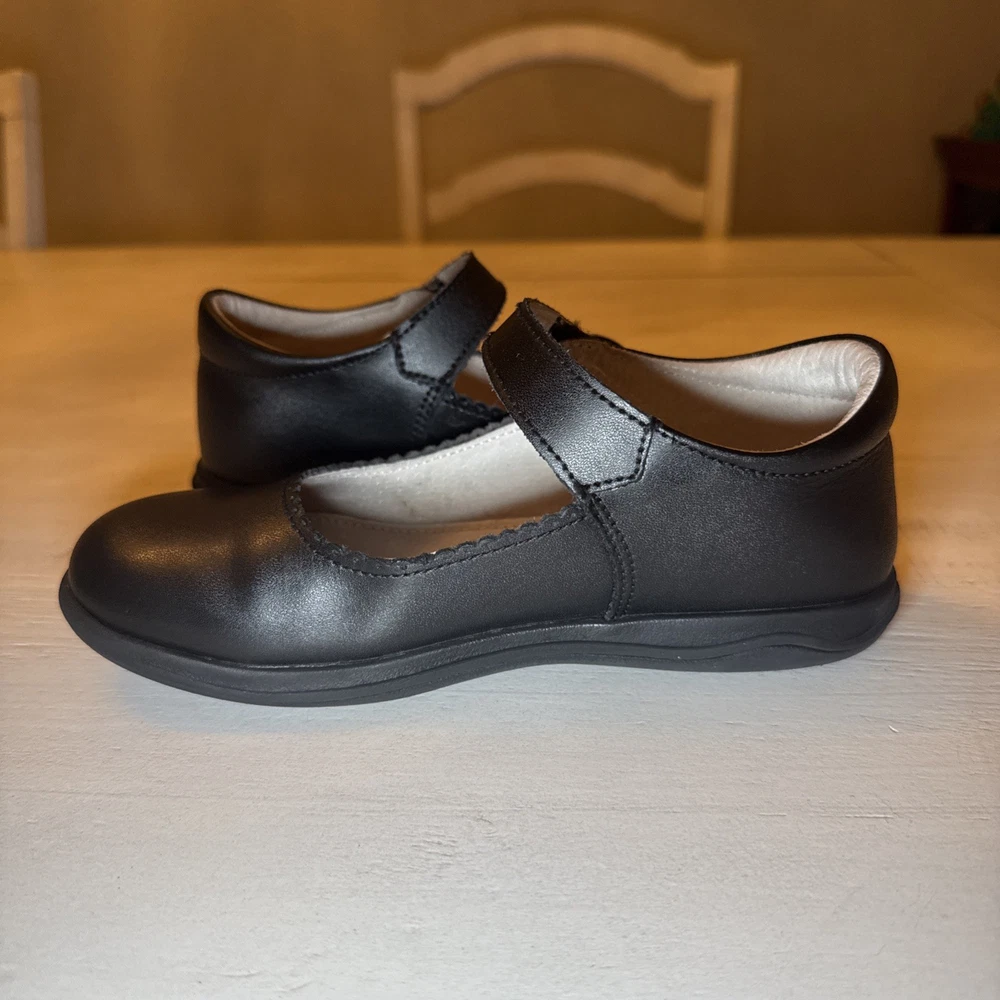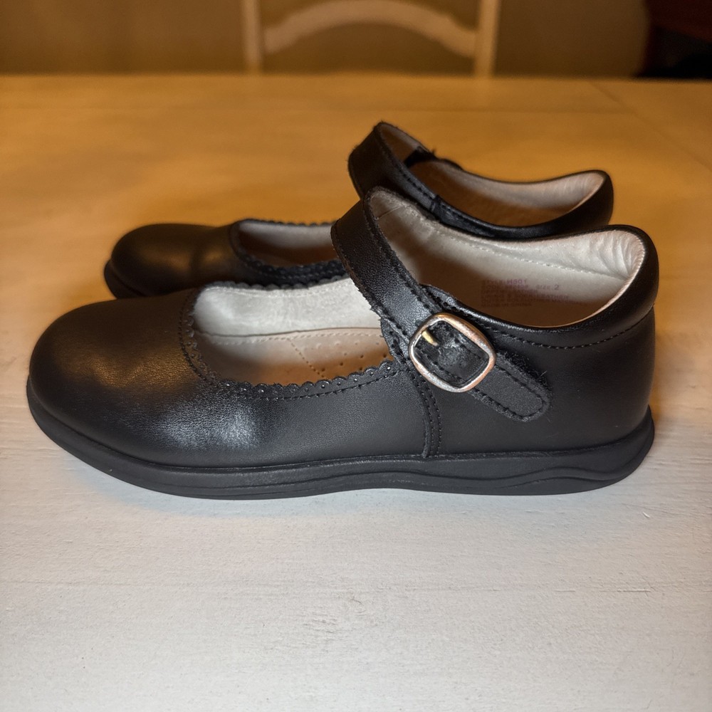 Description: Classic and versatile L’Amour Mary Jane shoes in black leather—perfect for school uniforms, special occasions, or everyday wear. Features a timeless design with a scalloped edge detail and adjustable strap for a secure fit. Details: * Brand: L’Amour * Style: H501 * Size: 2 (Toddler/Little Kid) * Color: Black * Material: Leather * Closure: Strap with buckle Condition: Gently used with some light scuffing on the front as shown in photos. Overall good condition and plenty of life left.