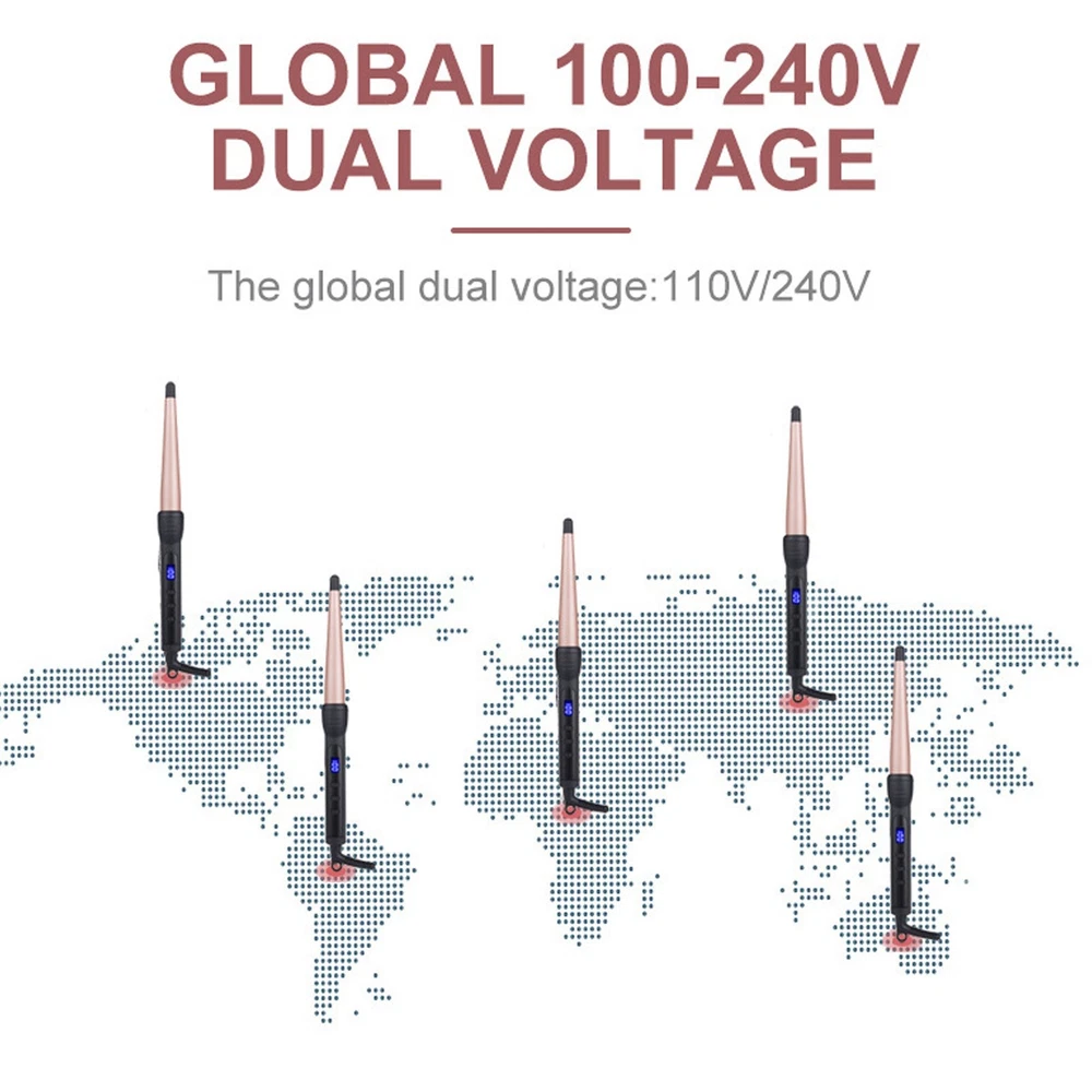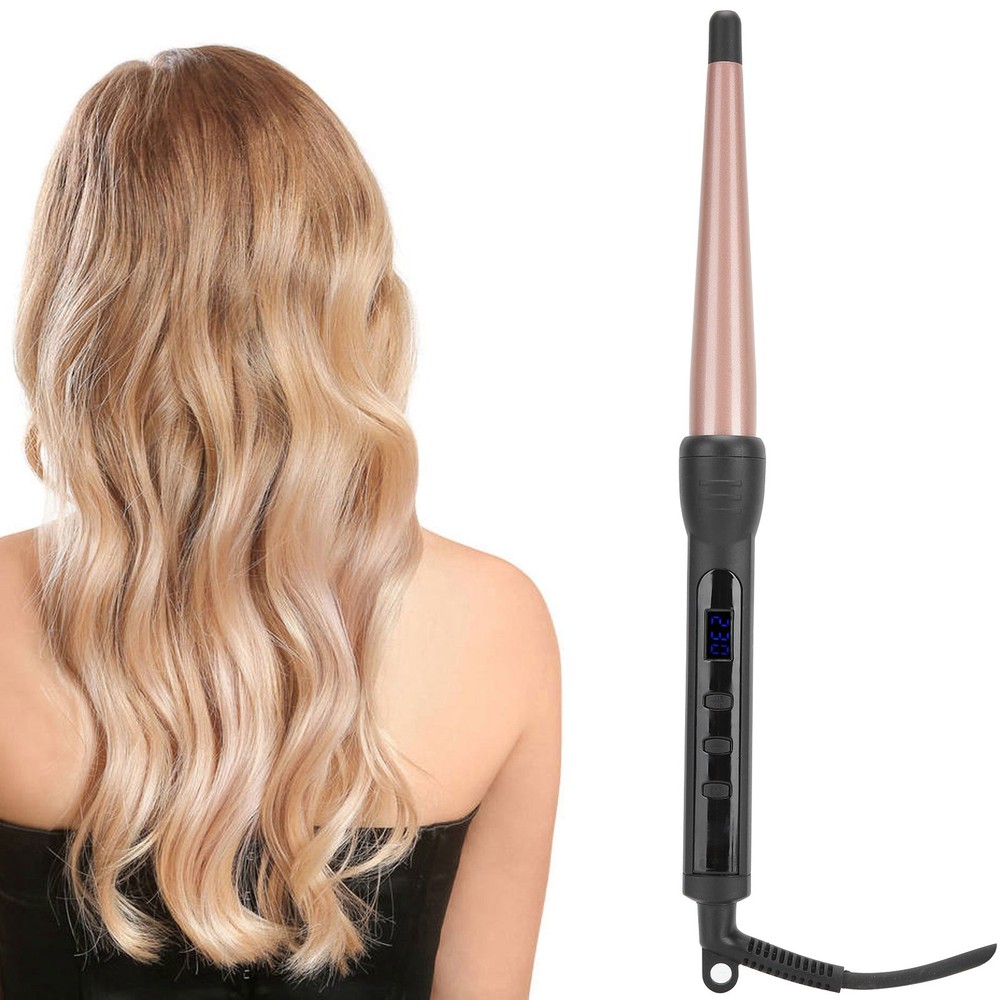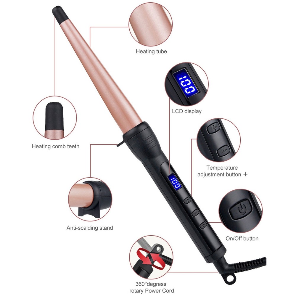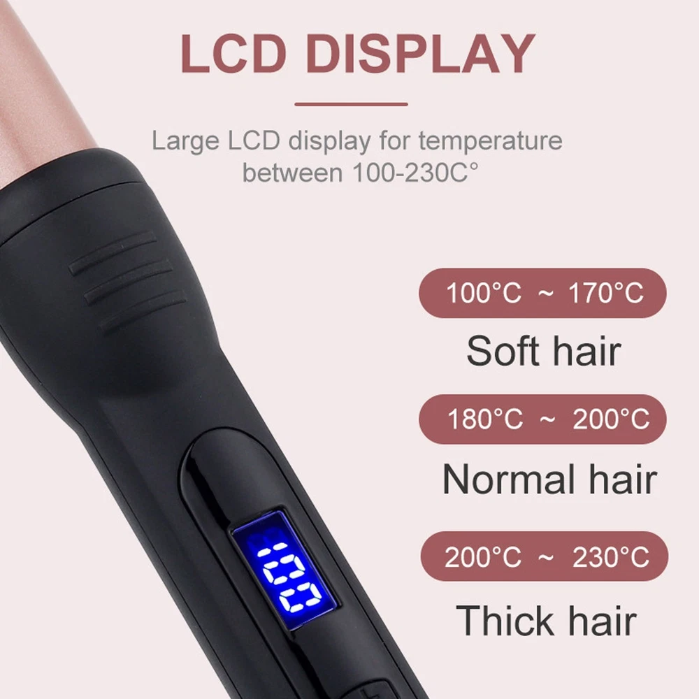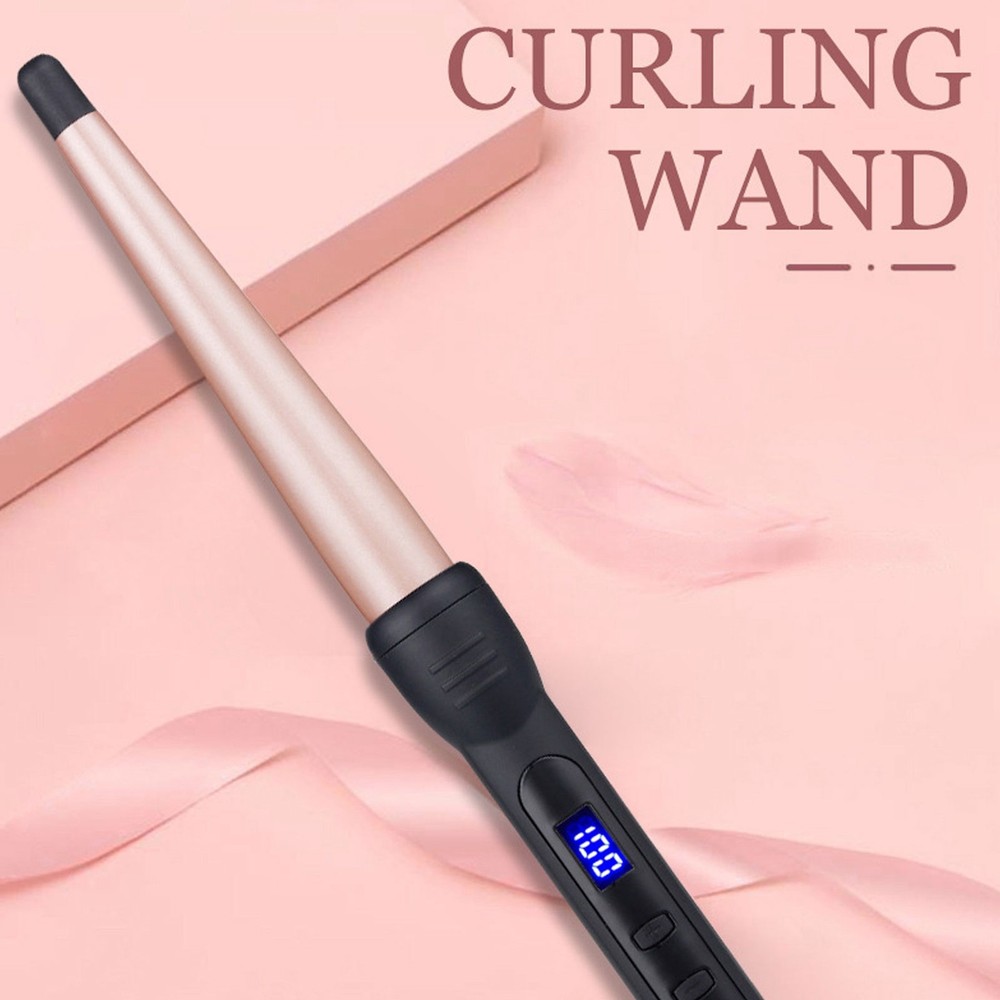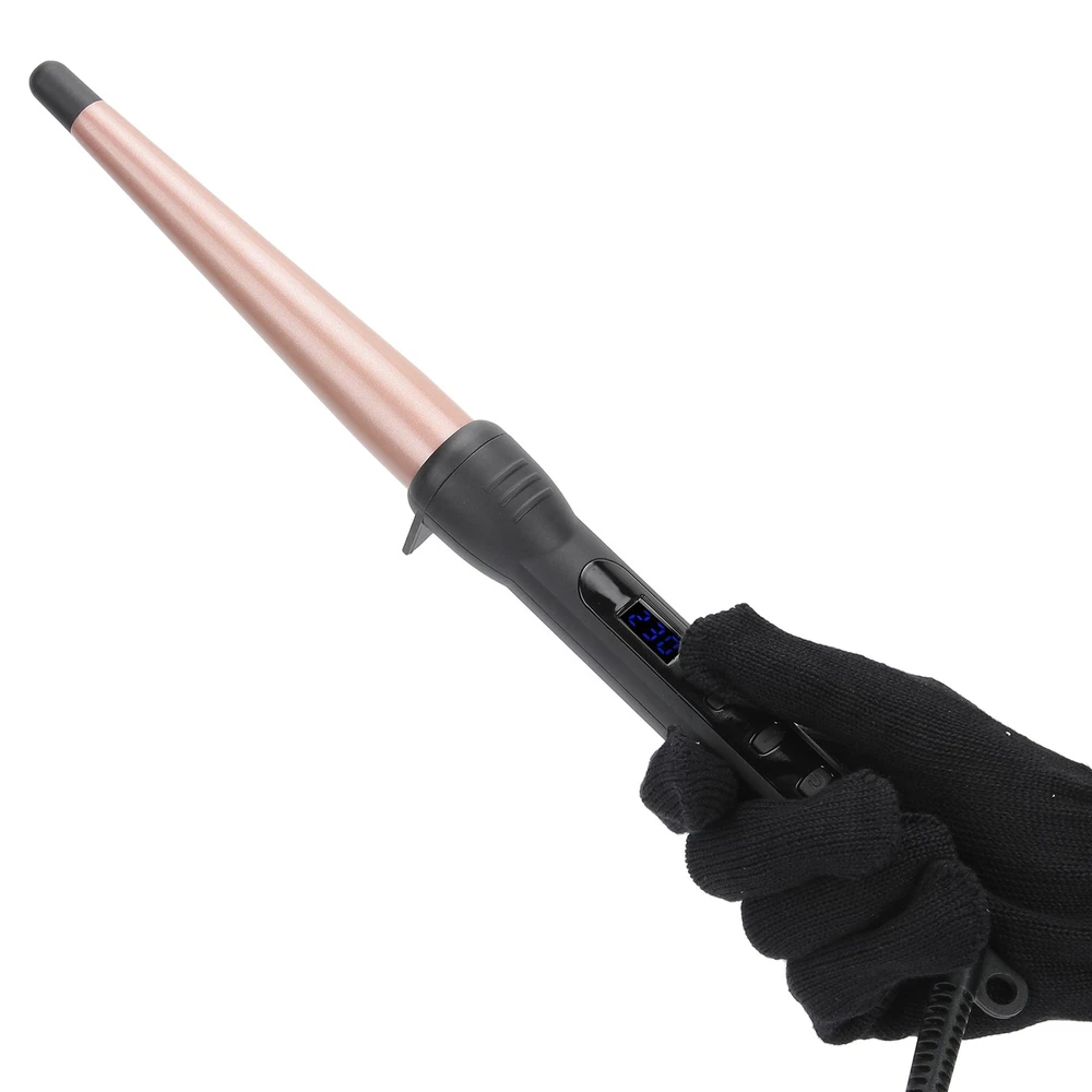 LCD Ceramic Electric Hair Curling Wand with Cone Rod for Styling