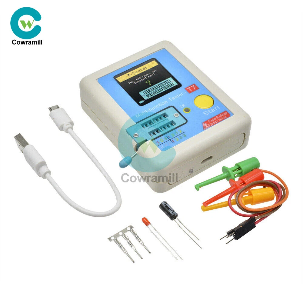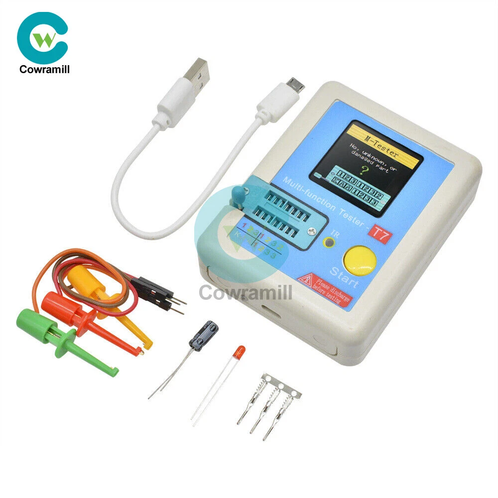 Visit store Items for sale About us Product Details Description: -160x128 TFT display -Multi function key -Transistor test area -Zener Diode test area -IR receiver window -Micro USB Charging Interface -Charge indicator LED -Chinese and English support Features: TFT graphic display Multifunction Tester. Transistor Tester - Automatic detection of zener diode 0.01-30V - Self test with automatic calibration IR decoder - Support Hitachi IR coding - IR waveform display - Infrared receiving instruction Other - Measure results using TFT graphic display (160x128) - a key operation - Automatic shut-off (Settable Timeout) -built-in High-capacity rechargeable Li-Ion battery - Detection of the voltage of the Li-ion-160x128 tft battery Warning: Built-in Li-ion Battery, it is strictly prohibited the tester immersed in water, or near a heat source! For your personal safety, please strictly comply with the use of Li-ion Battery specifications and precautions! Operating Instructions: 1.1 Key operational definitions Multi-function key has two actions: l Short press: Press the key and not less than 10 ms, release key within 1.5 seconds l Long press: Press the key more than 1.5 seconds 1.2 Power on In the power off state, short press the multifunction key, the tester is turned on and automatically measured. l Power on & measurement interface 1.3 Detect transistor In the power off state or the test is completed, put the test element into the transistor test area of test seat, and press the locking handle, short press the multifunction key, the tester automatically measure, graphical display of measurement results when testing is complete. Warning: Always be sure to DISCHARGE capacitors before connecting them to the tester! The tester may be damaged before you have switched it on! Warning: We do not recommend using the tester to measure the battery! The battery voltage must be less than 4.5V, otherwise the tester may be damaged! l Component placement Test seat are divided into transistors and zener diode test area, detailed in 1.1 Description. l No, unknown, or damaged part Package Included: 1PCS LCR-T7 TFT Transistor Tester Payment Method Shipping Policy Feedback Payment Method Payment must be received in 5 business days of auction closing. Please leave note for your special request (e.g. Colors or Size) when you pay the order. Any special request cannot be accepted after 24 hours of payment, because most of orders will be processed instantly and same day dispatched. Shipping Policy 1. We only ship to the confirmed address provided by eBay. please make sure your ebay address is 100% matches the address you would like us to ship to. If not, please let us know before we sent you the package, or we will not be responsible for any loss. hope you could understand. 2. Orders will be processed instantly and dispatched within 1-3 business days except hoilday, so we do NOT accept any email/message note after you place orders. 3. All package need to wait 30 days,Please take care it.Less than 30 days,we can't take a refund. Feedback We maintain high standards of excellence and strive for 100% customer satisfaction! Feedback is very important to us. We request that you keep in touch with us immediately BEFORE you give us neutral or negative feedback, so that we can satisfactorily address your concerns.