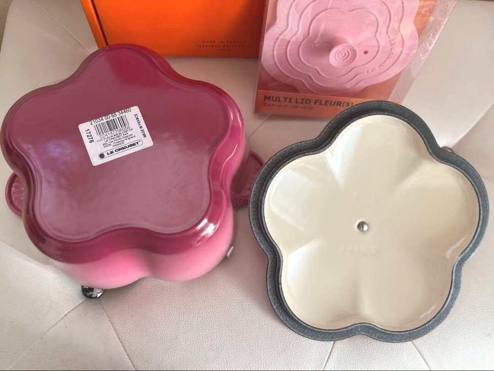 LE Creuset Pink Fleur Bouquet Cocotte Multi-Lid Set of 2 Limited Edition