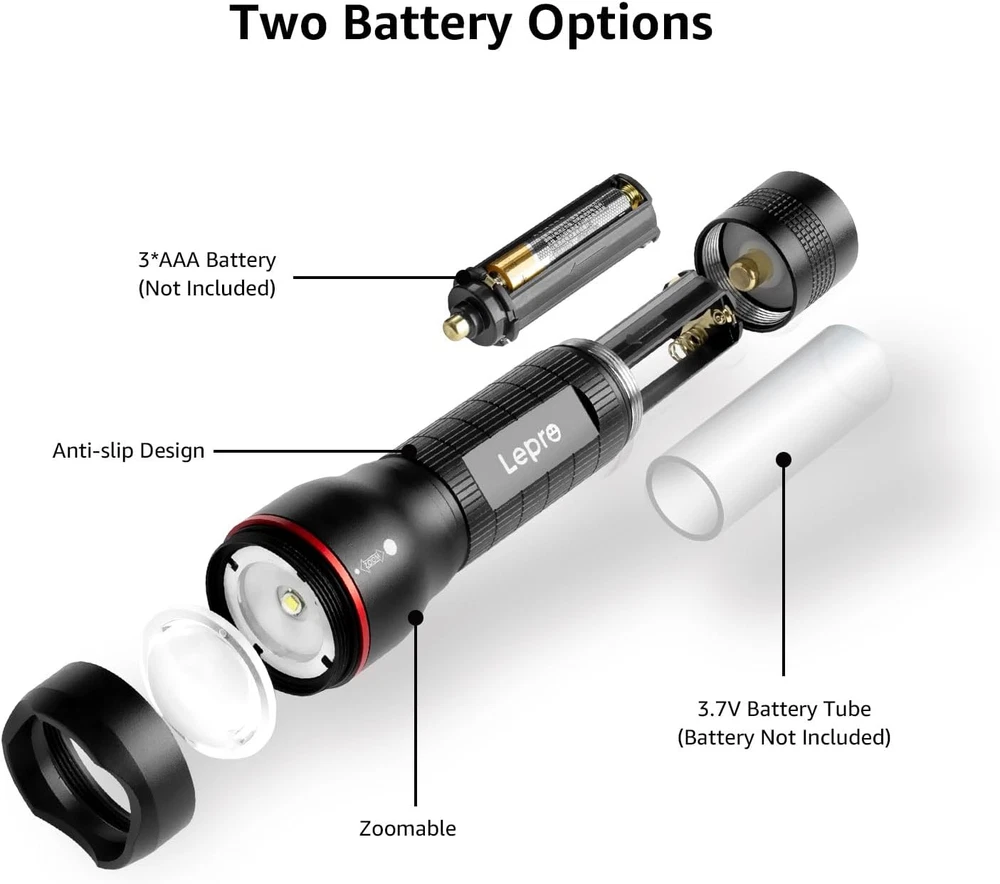 Store New Arrivals Add to Favorite View Feedback Contact LED Flashlights LE2000 High Lumen, 5 Lighting Modes, Zoomable, Waterproof, Pocket Size Flashlight for Outdoor, Emergency, Camping Gear, Powered by AAA Battery, 2 Pack Description Light Source Type LED Item model number PR120027-2 Warranty Description 2 years. Power Source Battery Powered Country of Origin China Batteries Included? No Specification Met IPX4 Special Features Lightweight Batteries Required? No Product Dimensions 0.04 x 14.57 x 5.12 inches Material Plastic Description Pile AAA Item Package Quantity 2 White Brightness 300 Lumens Light Source Wattage 0.45 Watts Brightness 300 Lumen Water Resistance Level Waterproof Item Weight 8.5 ounces Battery Description AAA Runtime 15000 hours Special Feature Lightweight Part Number LE2000 Color Black Wattage 10 watts Voltage 3.7 Volts Included Components Case Super Bright Light: Lepro flashlight gives off bright light to lit up a huge space or a long distance away. Best choice for outdoor working, walking the dog, and indoor emergency. 5 Lighting Modes: There are five lighting modes option; High, Medium, Low, SOS and Flash modes. Match all kinds need, such as general household use, outdoor activity, power cut, emergency, and search. 2 Battery Options: This LED flashlight can be powered by 2 kinds of battery. It comes with battery holders for AAA batteries and a battery tube for the rechargeable battery. (battery not included) Adjustable Focus: Zoomable functions make the flashlight not only light up a bright large area nearby your side, but also see a long distance away from your side. Water Resistance: Its Waterproof rate is IPX4, which can effectively protect the normal operation of the flashlight in the rain and snow. Product Description 1 IPX4 WATERPROOF 2 5 LIGHTING MODES 3 2 BATTERY OPTIONS 4 ANTI-SLIP & STURDY 5 SMALL & LIGHTWEIGHT 1 DOG WALKING 2 VEHICLE CHECK 3 POWER CUT 4 CAMPING 5 READING LE FLASHLIGHTS Add to Cart Add to Cart Add to Cart Add to Cart Customer Reviews 4.5 out of 5 stars 2,794 4.5 out of 5 stars 8,663 4.6 out of 5 stars 40,713 4.5 out of 5 stars 1,897 4.4 out of 5 stars 1,114 4.5 out of 5 stars 4,038 Price — $9.99 $ 9 . 99 $9.99 $ 9 . 99 — $16.99 $ 16 . 99 $18.99 $ 18 . 99 Brightness 300LM 120LM 140LM 300LM 900LM 1000LM Power Type AAA Battery powered AAA Battery powered AAA Battery powered AAA Battery powered AA Battery powered Rechargeable Battery Included ✘ ✘ ✔ ✘ ✘ ✔ Zoomable ✔ ✘ ✔ ✔ ✔ ✔ Beam Distance 150m/500ft 100m/300ft 150m/500ft 150m/500ft 150m/500ft 250m/820ft Water Resistance IPX4 IPX4 IPX4 IPX4 IPX4 IPX4 Size φ37*130mm φ16*132mm φ33*109mm φ37*130mm Ф44.5*181mm φ34*137mm ABOUT US We offer the best prices around on high quality products. Our E-store includes media such as books, movies, music and games while offering electronics, toys, sporting apparel, clothing, tools, general home, garden items and more. SHIPPING We are always working hard to ensure your package arrives as soon as possible. Please understand that some factors like weather, high postal traffic, and the performance of shipping companies are outside of our control. We offer free shipping to the lower 48 states and ship within 2 business days of payment, usually sooner. We do not accept P.O. Boxes. Please provide a physical address. For shipping outside of the continental USA, we only use eBay's Global Shipping Program.The item is shipped to KY and then sent to the rest of the world. International customers are responsible for all duties and taxes. Continue to check out in order to calculate costs for shipping the item to your country. Messages regarding eBay's Global Shipping Program MUST be directed at eBay EXCLUSIVELY. RETURNS We offer a 30-Day Return Policy on items which you are not completely satisfied with. You have the option for a full-refund or an exchange of the item. No returns are available on items shipped outside of the USA. PAYMENT We accept PayPal. CONTACT US This page content is yet to come Please ad us to your favorite seller and visit again later Thank You CUSTOMER SATISFACTION We try our very best to make sure every customer is completely satisfied. If there's a problem, message us! We're happy to help. WE ACCEPT Copyright © 2021 AutoDS. | All Rights Reserved