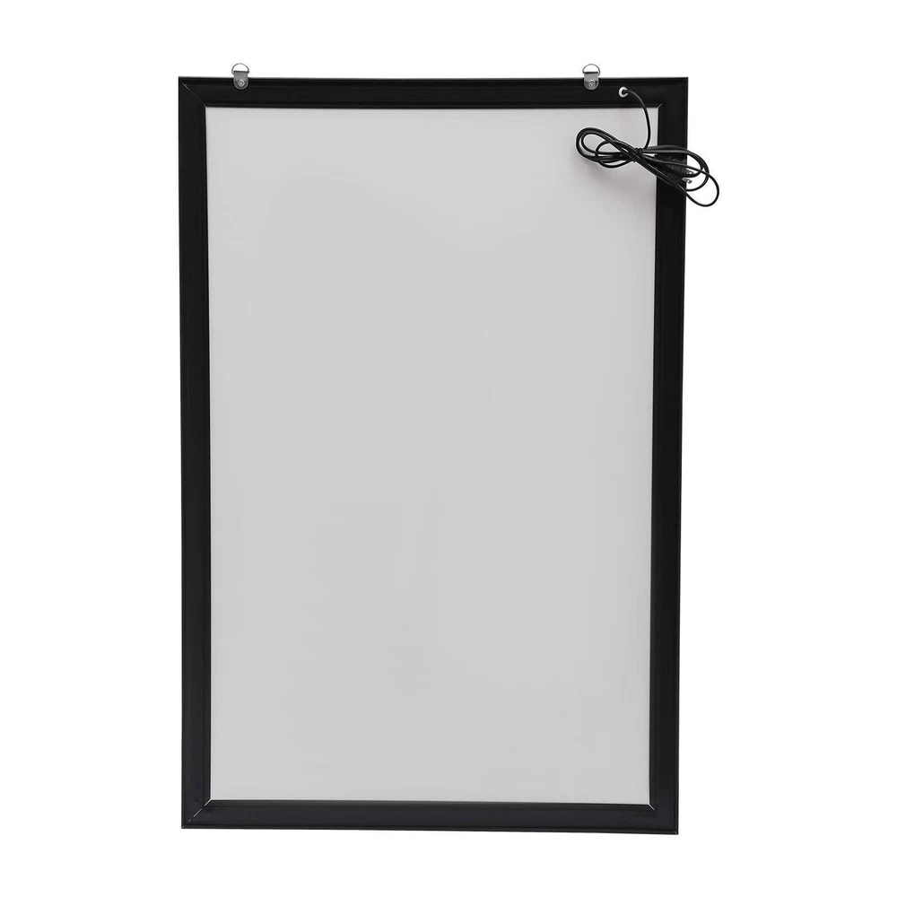 LED Movie Poster Frame 18" x 24" LED Light Box Display Sign Holder in Silver Wall Mounting, Aluminum Alloy, Frame for Movie Poster Advertising Display Application It is suitable for exhibitions, advertisements, signs, and decorations in cinemas, event promotions, retail stores, restaurants, art displays, trade shows, banks, hospitals, libraries, counters, offices, companies, menu boards, jewelry stores, hotels, studios, etc. Key Features Soft Light: This product uses a uniform nano light guide plate and side light guide technology, making the light soft and not harsh to protect your eyes. The LED light has high brightness, fast heat dissipation, which can provide stable performance, extend the service life of the product, and save electricity. Multiple Uses: It can display posters for cinemas, shopping malls, restaurants, etc. to attract customers' attention or be used as a signs board to guide the way for passersby. You can also put it at home for decoration or use it as a display board for art galleries and museums. Narrow Edge Design: The frame is spliced at 45° and has a width of 1.5 inch, which can maximize the visibility of the visual area (18 *24 inches) and play a promotional and display role. Thoughtful Design: The built-in stainless steel shrapnel and the front-opening frame design allow you to gently flip out to open the panel, making it easy to replace the poster Details Study Hooks: With two sturdy hooks on the back, you can easily hang this product on the wall. Strong and Durable: The high-quality acrylic panel is dustproof, moisture-proof, and can resist impact and deformation. Meanwhile, the aluminum alloy frame adopts a sandblasting process, baking paint process, and an oxidation process, so it can resist wear, corrosion, rust, and heat. Protective Packaging: The four corners of the product are wrapped with sponges to resist compression and falls, which can prevent product damage in transit. Ready to Use: This product doesn't need assembly and you can use it directly after plugging it in. Installation 1.Place the poster frame on the wall, and mark the location of the nail hole with a pen. 2.Drill 2/4 holes at the marked position and punch nails(not included). 3.Remove the rear protective film and hang the frame on the corresponding nail. 4.Remove the front protective film. Specification Color: Black Material: Acrylic, Aluminium Alloy Shape: Rectangular Style: Modern Plug Voltage: 110V Power: 10W Power Type: Plug-in Mounting Type: Wall Mount Lumen: 2000lux CRI: >85 Color Temperatur: 9000-10000K Service Time: About 80000h Efficiency: E Plug: American Standard Light Source: LED (Included) Net Weight: 2.5kg/5.5lbs Gross Weight: 3kg/6.6lbs Surface Treatment: Sandblasting Process, Baking Paint Process, Oxidation Process, Cutting Process Product Size: 45.72*3*60.96cm/18*1.2*24inch Package Size: 68*47*4cm/26*18*1inch Package Included 1* LED Poster Frame Notes 1.The product has protective films on both sides, please tear them off before use. 2.Please allow the slight color difference caused by the shooting light and 1-3cm error due to manual measurement, and make sure you do not mind before ordering. On Nov 7, 2024 at 18:22:31 PST, seller added the following information: