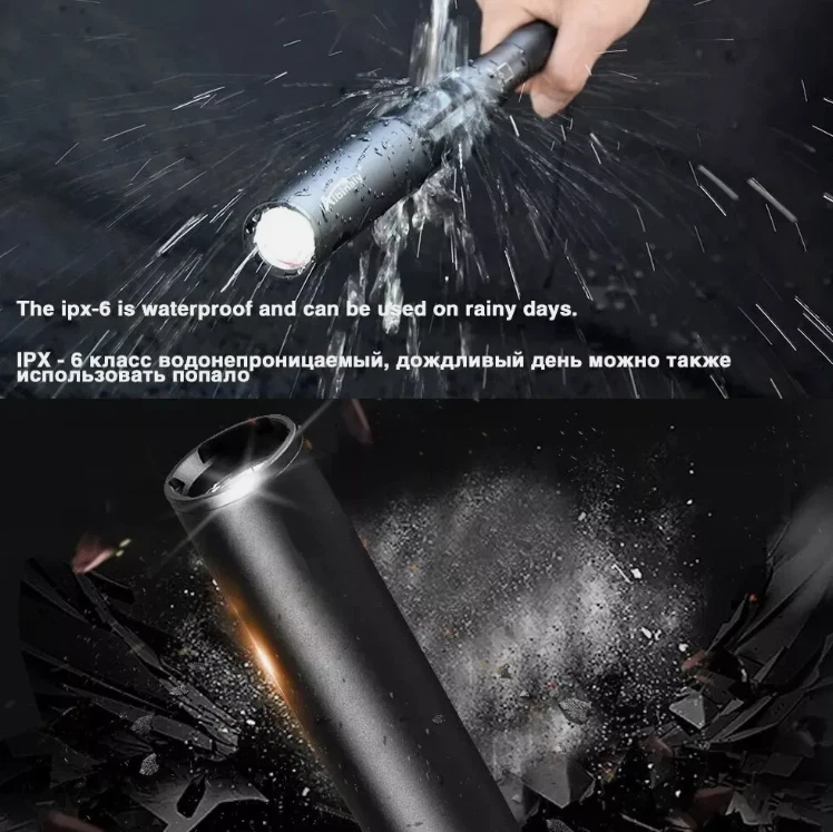 LED Bat Flashlight Stick Waterproof Aluminium Alloy Torch Specifications: Lighting modes:High / Low / Strobe Battery: 4x AA battery(not included) Lighting time: 18-36 hours Waterproof material: IPX-6 waterproof grade, can prevent rain, do not submerge Lamp beads: T6 Power: 10W Material: aluminum alloy Color: black